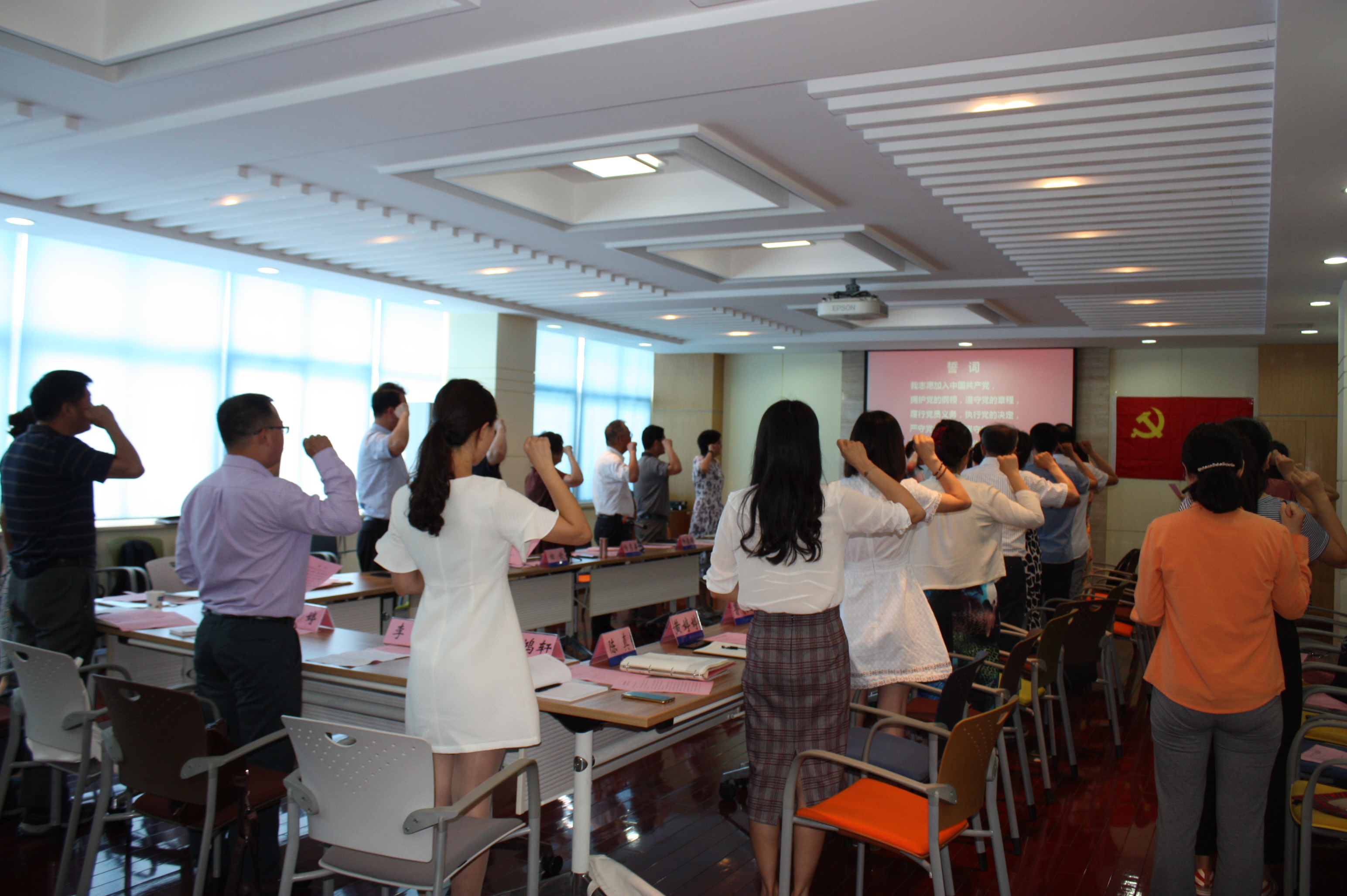 座谈会之初,全体与会代表与新党员一起重温入党誓词。当“我志愿加入中国共产党,拥护党的纲领,遵守党的章程,履行党员义务……”熟悉的语句响起,高举的拳头,胸前的党徽,鲜红的党旗映衬着激动的脸庞,无不感受到作为一名中国共产党员的自豪感和使命感。