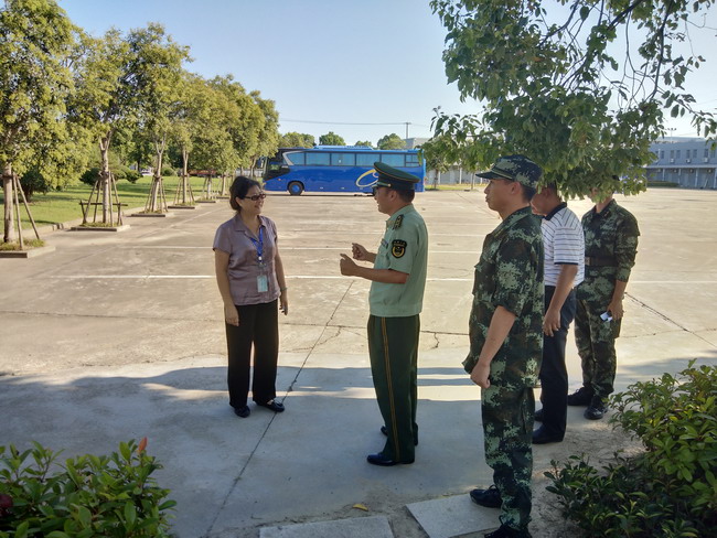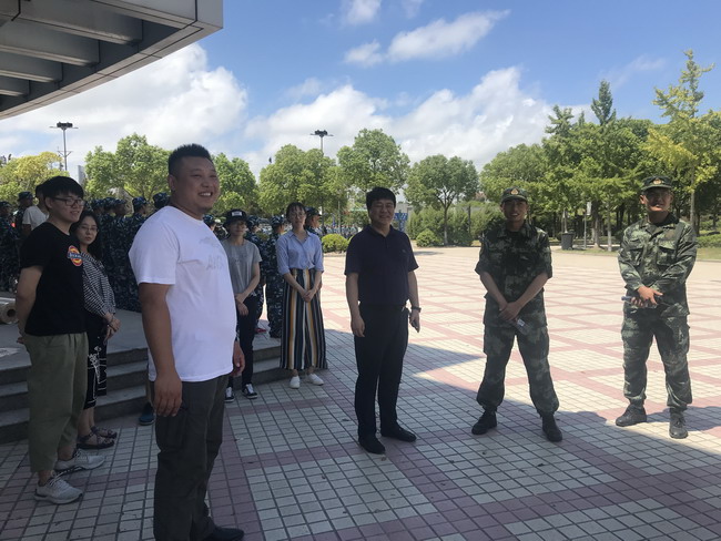 校领导一行还看望了军训管理人员,向他们暑假期间参加军训工作表示慰问和感谢,希望他们主动与教官沟通,坚守在学生身边,关心学生的训练情况和身心健康,顺利完成军训任务。