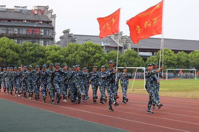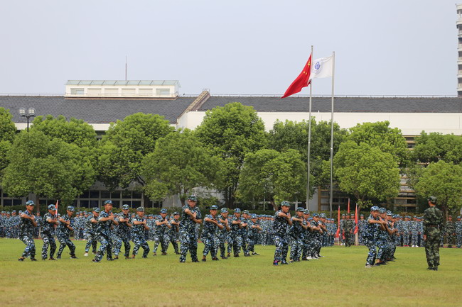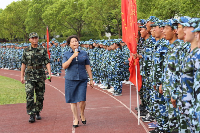 2018年8月29日至9月7日学校组织开展了为期十天的军事训练,2017级学生及2018级中高职贯通班学生共3000余名参加。在参训学生、军训管理人员、全体教官的共同努力下,顺利完成了军训各项任务。9月6日下午,2017级学生军训闭营式在奉贤校区室外运动场举行。学校党委书记田钦、党委副书记、校长杨秀英、副校长窦争妍、副校长徐德明、副校长张涛、军训团团长吴文涛等出席。闭营式由武装部部长蔡军林主持。