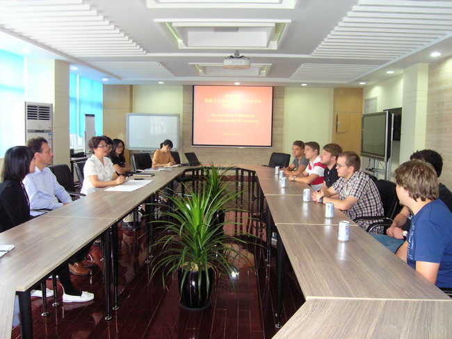 开学伊始,我院中外合作办学合作院校德国兰茨胡特应用技术大学电子系Robert Janker等6名德国学生到我院开始为期一学期的实习计划。学院领导杨秀英院长、兰茨胡特应用技术大学Poernbacher教授、相关系部主任及专业辅导人员为德国6名实习生举行了简短的欢迎仪式。