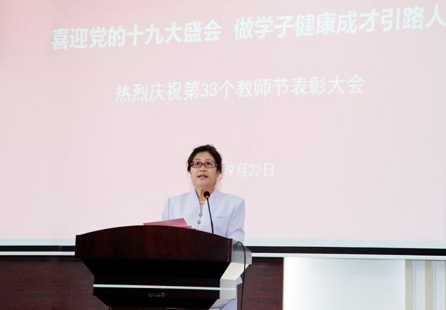 学校党委书记、校长杨秀英代表代表学校党委和行政,向长期以来默默耕耘在学校教学、科研以及管理工作第一线的全体教职工,致以节日的祝贺和崇高的敬意;向刚刚步入工作岗位的青年教师致以美好祝愿,向获得奖励的集体和个人表示热烈的祝贺!