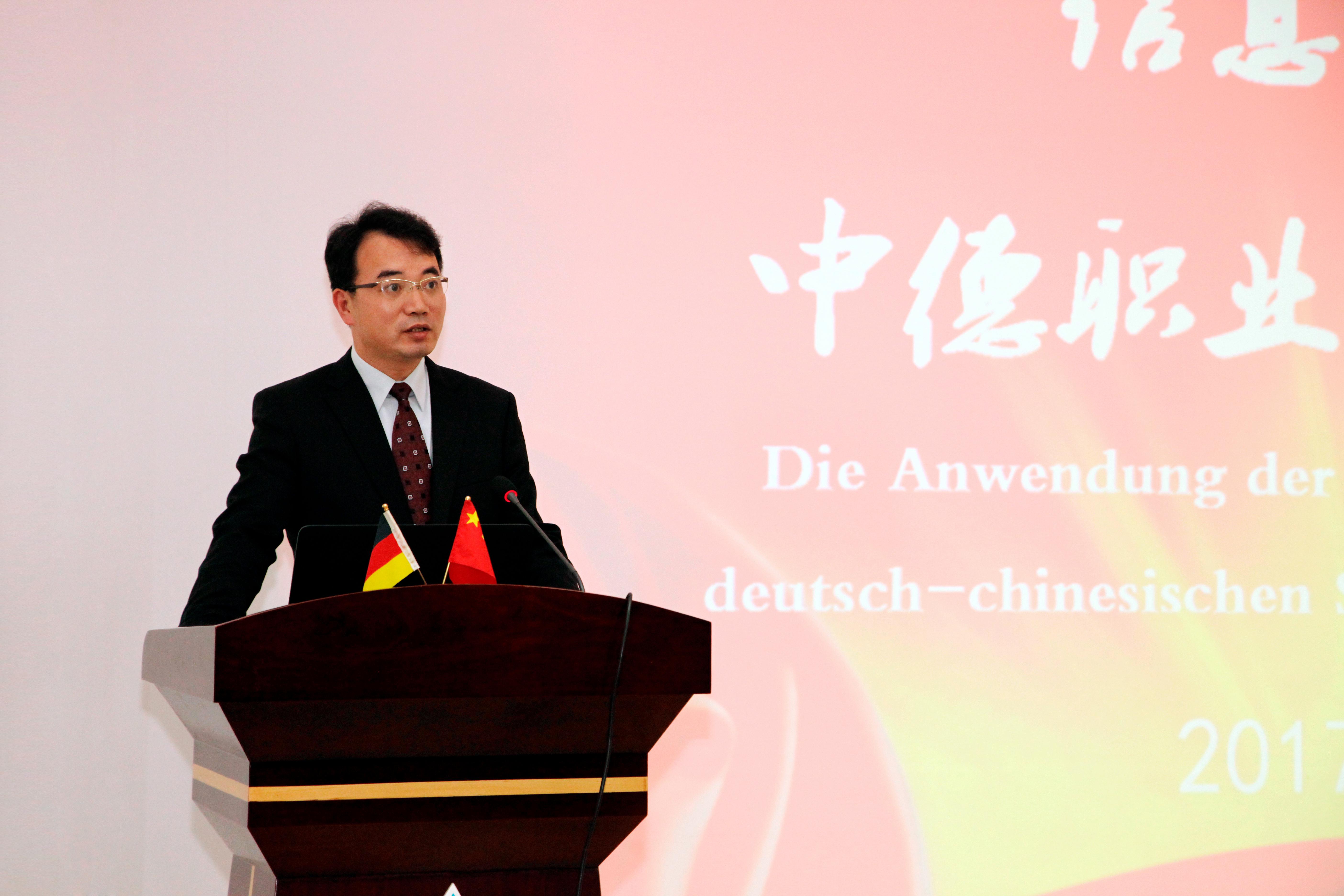 上海城建职业学院院长叶银忠介绍了中德(上海)职教联盟的情况。中德(上海)职教联盟是在上海市教委的支持下,由上海电子信息职业技术学院(上海电子工业学校)、德国汉斯·赛德尔基金会联合发起由各成员单位共同组建的合作机构。中德(上海)职教联盟是多方合作的纽带,是追求社会效益和经济效益的命运共同体。联盟以“资源共享、互利发展”为宗旨,共享资源、共享讲师、共享培训、共享信息化、共享培养模式,探索适应现代职业教育的办学模式,开展中德两国职教深入、广泛、持久、共赢的合作。