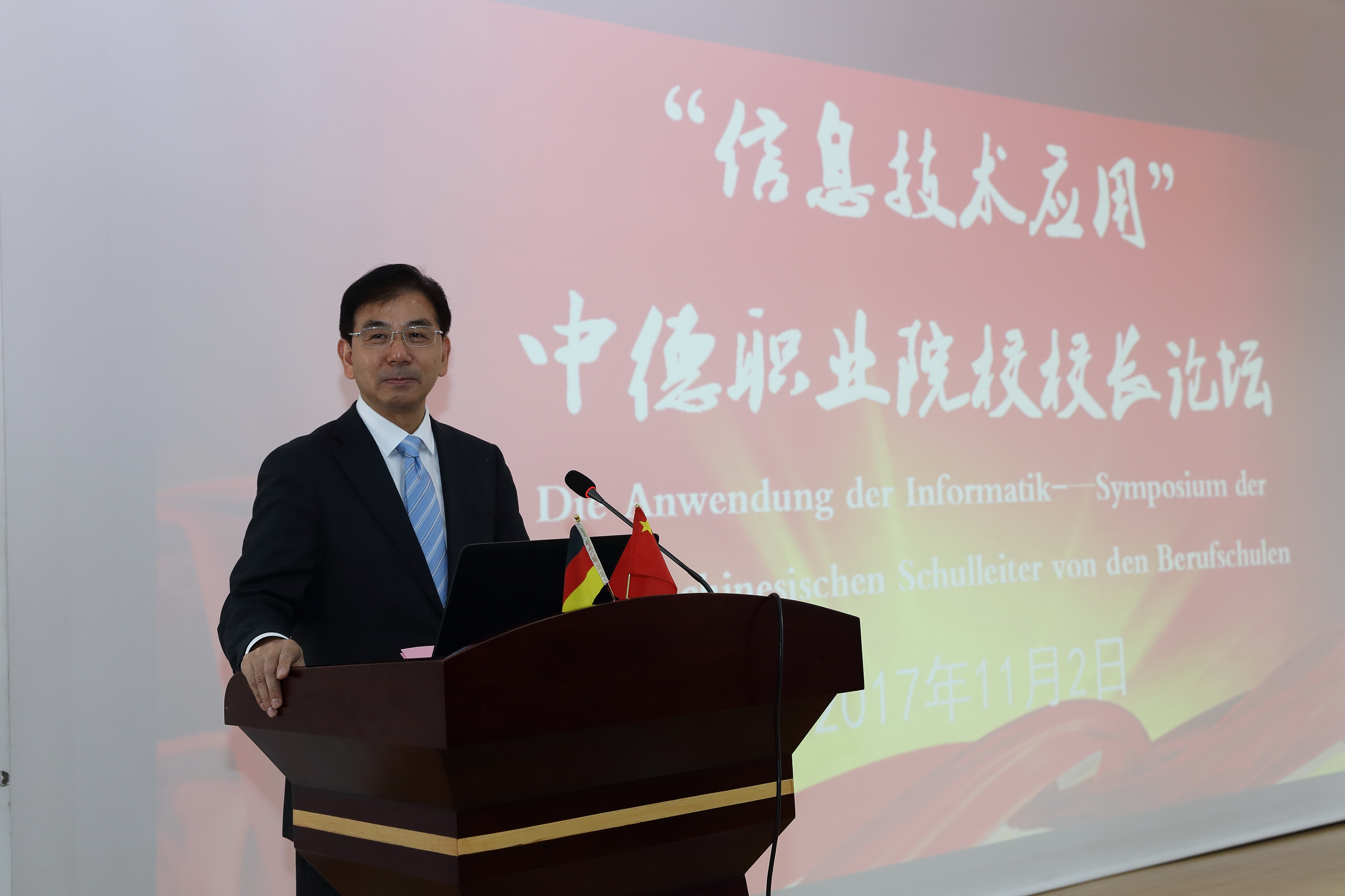 目前,上海已有22所中职,9所高职院校申请加入中德(上海)职教联盟会上举行了联盟揭牌仪式。随后,与会嘉宾听取了中德双方主旨报告:德国迪林根师资及领导力进修学院卡塔琳娜·施朗普作《职业院校的数字化进程:行业及教育政策所赋予的任务-德国院校的挑战》报告,我校党委副书记、副院长顾剑锋作《“互联网+”背景下的智慧校园建设》的报告。