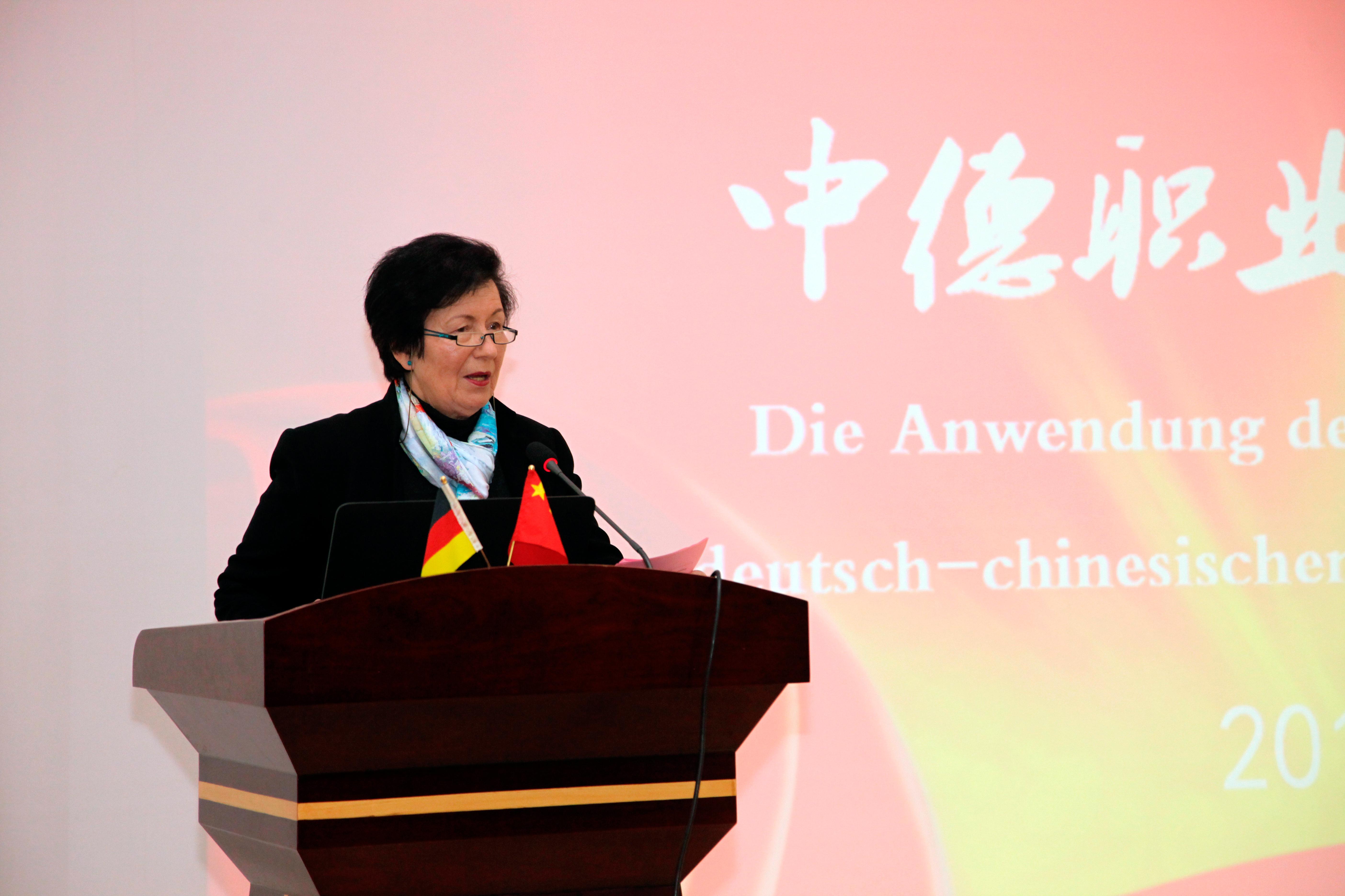 上海电子信息职业技术学院(上海电子工业学校)校长杨秀英发表讲话,她说,成立中德(上海)职教联盟,是上海四个中心建设、创新中心发展、国际大都市和卓越城市的定位对职业教育走国际化道路的要求,更是职业院校毕业生参与国际竞争的现实需求。联盟将为两国职教届搭建学习与交流的平台,使成员单位在师资队伍建设、人才培育、专业建设等方面优势互补、合作共赢、长足发展,使职业教育院校在飞速发展的技术、全球化的经济形势下,能共同培养适应行业发展需要的技术技能应用人才。基于“平等互利、合作共赢”的宗旨,中德还将联合举办“信息技术应用”校长论坛。感谢市政府、市教委对成立中德(上海)职教联盟给予的支持和厚望,使命艰巨,下一步我们将完善章程、制定制度、搭建机构、规范议事、良性沟通,希望我们搭建的平台能够成为中德职教同仁切磋教艺的平台,中德职业院校共同发展的平台。