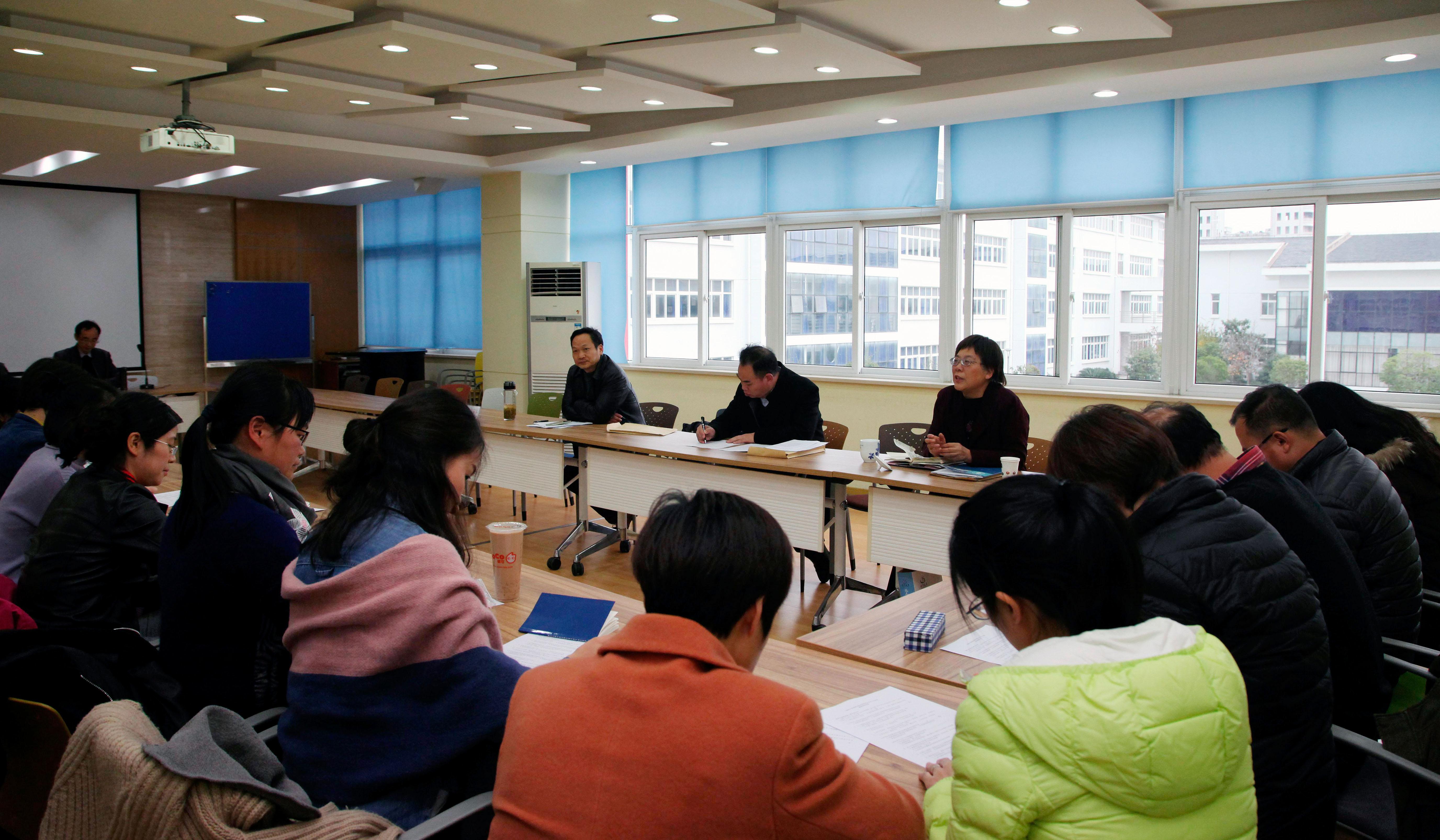 受市语委、市教委的委托,上海市教育评估院组织5名专家在组长市语委原副主任、中共上海市教育卫生纪律检查工作委员会原书记黄也放副研究员的带领下对我校的语言文字工作进行了评估。市教育评估院副院长李耀刚,我校语委主任、党委书记田钦,语委主任、党委副书记、校长杨秀英,语委副主任、副校长窦争妍,及全体语委委员出席了评估汇报会。