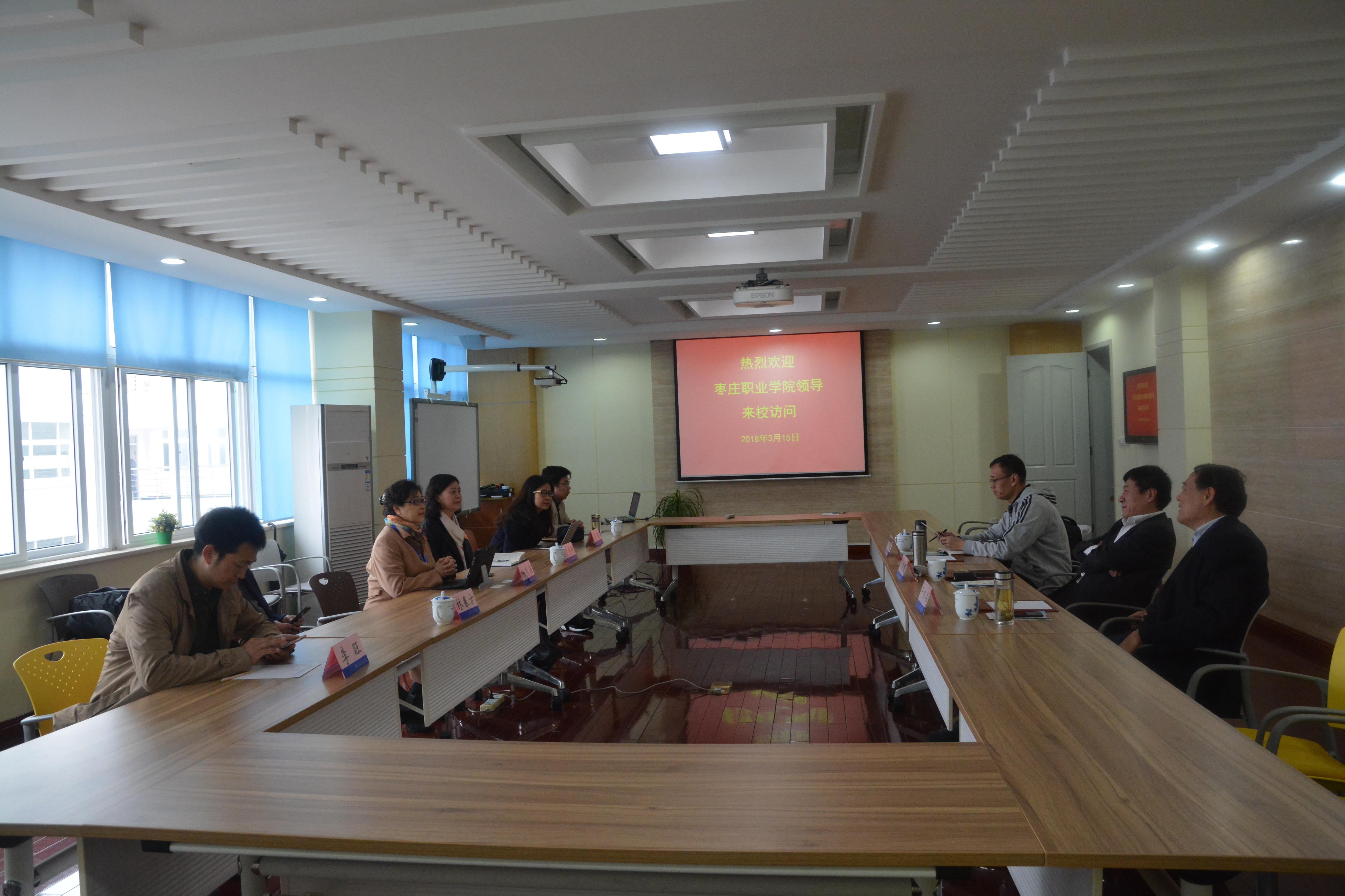 3月15日,枣庄职业学院党委书记战振强一行来我校进行交流访问。我校党委书记田钦、校长杨秀英、副校长窦争妍以及教务处、质量管理处、校企合作办、校办相关负责人参加了交流会谈。