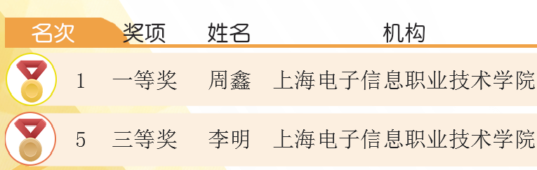 近日,2017年中国技能大赛—上海市职业技能大赛网站设计项目决赛获奖名单公布,我校通信与信息工程学院学生周鑫荣获一等奖、李明荣获三等奖。