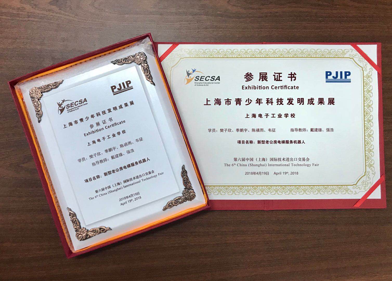 2018年4月19日至4月21日,第六届中国(上海)国际技术进出口交易会(上交会)在上海世博展览馆开幕,我校学生电子科技社团的科技发明项目“新型老公房电梯服务机器人”通过层层遴选脱颖而出,亮相上海市青少年创新成果展,成为展会一大亮点。