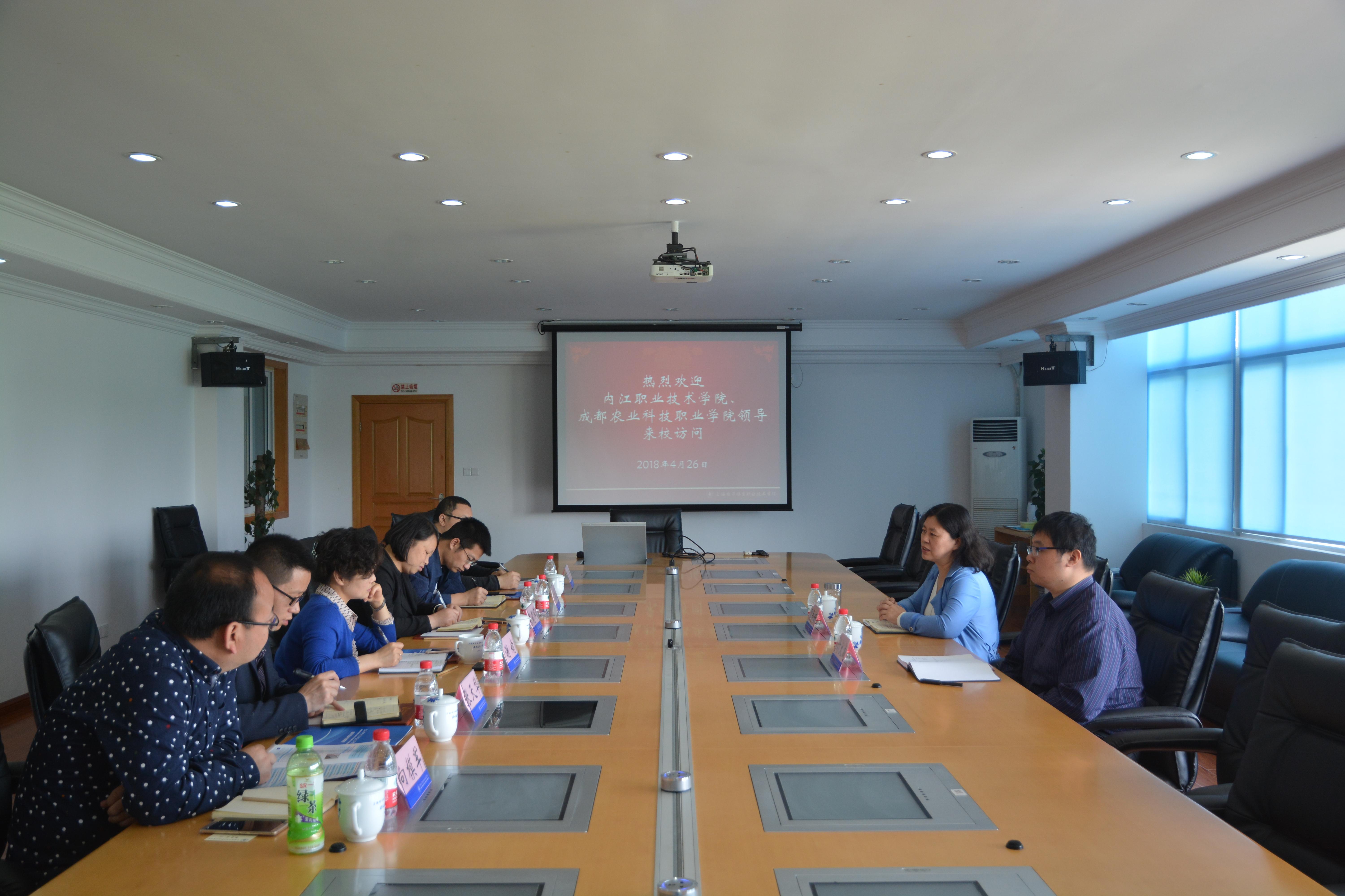 4月26日,内江职业技术学院、成都农业科技职业学院一行共6人来我校进行交流访问。我校副校长窦争妍及信息中心副主任计大威参加了交流会谈。 窦争妍副校长对内江职业技术学院及成都农业科技职业学院一行的来访表示热烈欢迎。会上,窦争妍副校长介绍了学校的整体概况和发展特色,针对对方感兴趣的质量诊断与改进体系建设、信息化平台建设、常态化人才培养保证机制等方面进行了详细介绍。 会后,内江职业技术学院、成都农业科技职业学院一行参观了学校实训基地。(校办) /p>