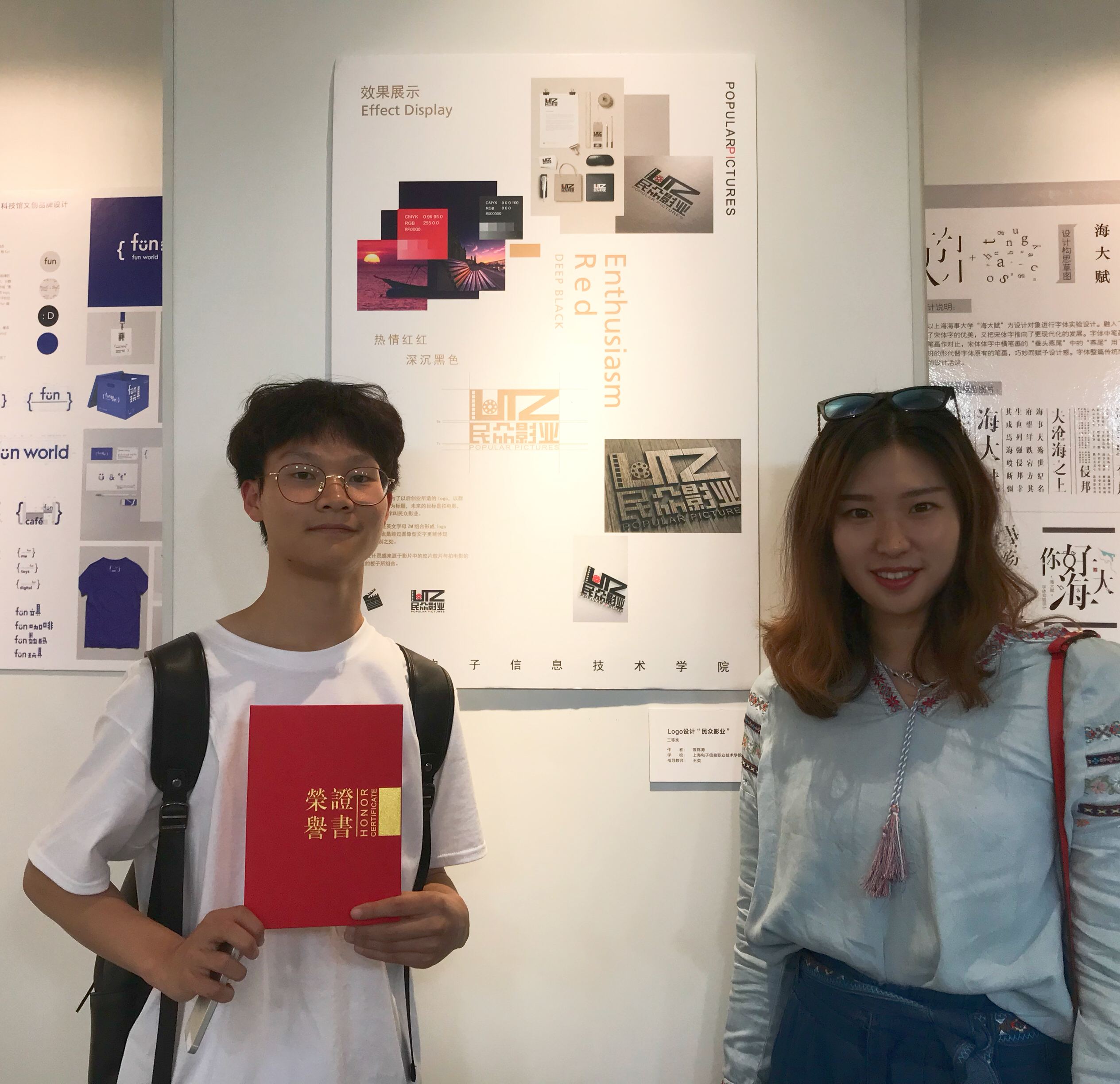 本届活动总计收到来自42所高校的500多份大学生原创投稿作品,共有186件作品获奖并参展。我校设计与艺术学院17级数媒艺术1班陈锦涛同学的参赛作品“民众影业”LOGO设计在众多参赛作品中崭露头角,荣获了三等奖的好成绩。获奖后陈锦涛同学非常高兴,他认为比赛的意义在于鼓励大学生们勇于创新,发挥自己的实力,同时活动也给大家提供了一个很好的平台,能去互相交流互相学习。