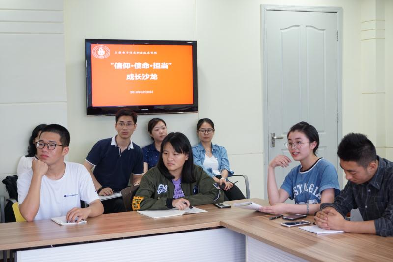 接着,五位校友一一分享了自己在校期间的学习经历、实践经历和申请入党的经历等,并讲述这些经历对自己踏入社会之后的成长所不可替代的意义。他们当中,有的利用所学专业知识,服务于行业企业,成为行业精英;有的利用自己的一技之长,精研技术,成为技术专家;有的毕业之后埋头深造,提升自己,积极回报社会。大家被校友们的励志成长故事深深感染。到自由讨论环节,大家敞开心扉、畅所欲言,纷纷表达此次分享座谈中的所学、所思、所获,并向学长们悉心请教自身面临的疑惑。每位学长均被“点击”,他们都耐心细致的帮助师弟师妹们开拓视野、消除困惑,他们真切走心的话语、独到深刻的见解赢得阵阵掌声。