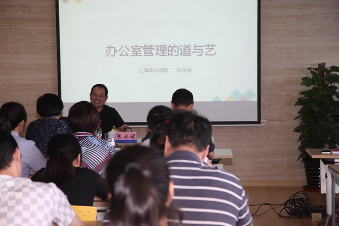 学校相关职能部门特组织举办了办公室工作系列专题培训。继6月28日特邀资深专家,上海市教卫工作党委办公室王庆副主任作“公文写作专题培训”之后,学校于2018年9月28日又邀了上海政法学院文学与传媒学院教授、硕士生导师张永禄老师到校作“办公室管理的道与艺”专题培训。张老师长期从事办公室管理的教学与研究,兼任上海市公务员培训中心军转干部公务员培训客座教授,在核心刊物发表论文100余篇,主编国家十二五规划教材《办公室事务管理》,科研成果丰硕。学院办公室系统全体人员共40余人参与培训。