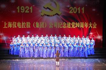 6月21日下午,上海仪电控股(集团)公司 “庆祝建党九十周年大会”在星舞台剧院隆重举行。纪念大会举行了欢庆的红歌汇演,演出分风雨历程、火红岁月、辉煌时代三个篇章。此次汇演共有11个单位合唱团进行了红歌大合唱比赛,12个单位和个人进行了红色经典歌曲表演。红歌汇演精彩纷呈,比赛现场高潮迭起,我院由70余名师生代表组成的合唱团发挥出色,以一曲《今天是你的生日》荣获红歌比赛类一等奖,教工女生四重唱《洪湖水浪打浪》荣获歌曲表演类优秀组合奖。