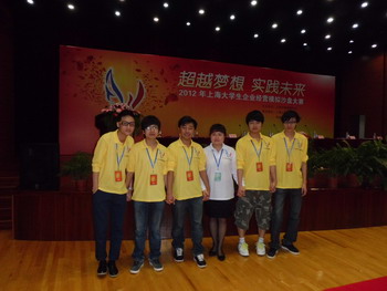 日前,由上海市教育委员会主办的“2012 年上海大学生企业经营模拟沙盘大赛”总决赛在上海大学嘉定校区结束。由我院经济与管理系学生夏慕健、刘泽瑜、谭磊、杨卓林和王得力组成的EAST STAR参赛团队发挥出色,获得了高职组第三名,三等奖的奖项,陈蓓蕾老师获得优胜指导教师奖。