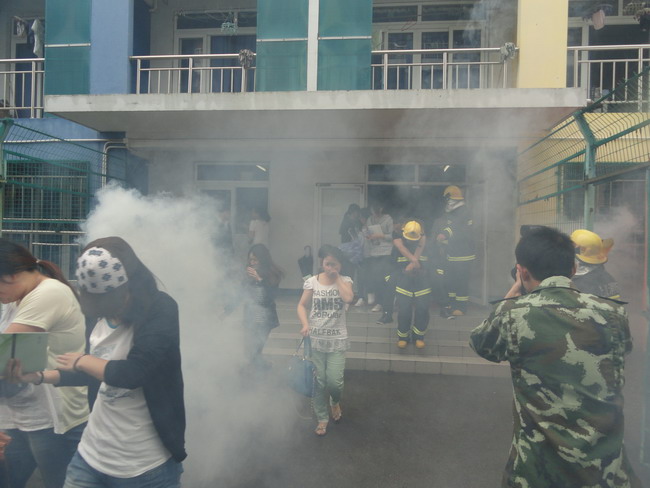 本次演习是我院进驻奉贤以来首次和消防武警部队合作并使用专业救援设备举办的消防演习,生动直观地为我院大学生进行一次消防安全教育,也是对我院消防应急预案和新装消防警报系统的一次检验。(赵飞)/p>