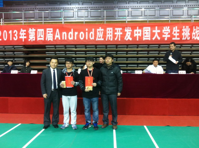本次大赛历时8个月,比赛分为区域赛和全国总决赛两个阶段,总计有超过300支团队提交了参赛作品,评出1个一等奖、2个二等奖。沈佳俊和孙程远两位同学作为Android俱乐部的骨干成员在俱乐部负责人沈毓骏老师的指导下早早便进入了备战状态,利用课余时间认真学习,热烈讨论,和老师一起解决了一个又一个的技术难题,同时系部领导的大力支持提供了良好的实验设备及培训条件。最终这支参赛队收获了成功的果实。/p>