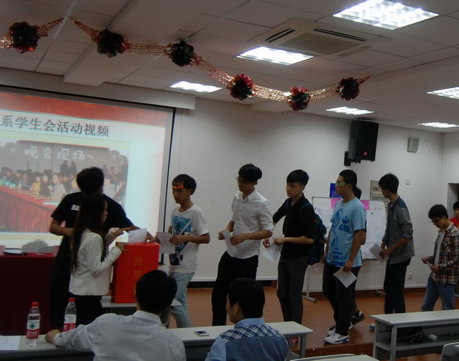 2014年9月23日,我院计算机应用系2014-2015学年团总支、学生会换届选举大会在H2402隆重召开。根据《中国共产主义青年团团章》及学院关于学生会管理的相关文件要求,计算机系团总支严格按程序,认真推选候选人,选举了团员代表和学生代表。系党支部副书记谌明举老师、学院团委书记助理宋立峰老师出席换届选举大会并发言。会上,计算机系团总支和学生会同学分别做了2013-2014学年计算机系团总支、学生会工作报告,会议选举产生新一届团学干部。(曹立云)/p>