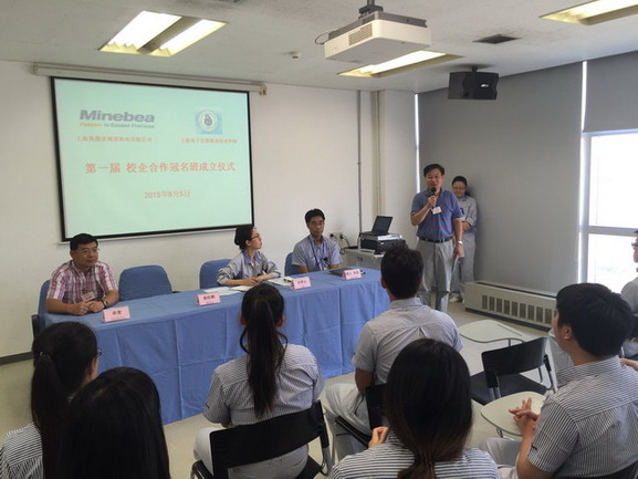 2015年8月5日,“上海电子信息职业技术学院与上海美蓓亚精密机电有限公司校企合作企业冠名班开班典礼”在美蓓亚青浦工厂正式举行,我院副院长徐松鹤、上海美蓓亚精密机电有限公司日方经理根立直哉、人事总监吕青云等企业部门代表出席开班典礼。