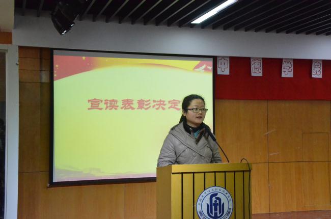 2016年12月28日中午,我院中德学院召开2016年度学生表彰大会。中德学院党支部副书记、副院长蔡林洁老师、中德学院学生秘书梁咏梅老师、学院团总支书记、中德学院易班工作站指导老师张姝老师宣读表彰决定,共有三大类23个奖项,学生代表张学进同学、张春城同学、时翔宇同学先后上台发言,三位同学分别从工作、学习、比赛角度出发,鼓励同学们付出勇气与行动去历练自己,并向在场的所有同学提出了三点建议:1、充分利用图书馆来充实自己,无论是专业书还是课外书,总会有所收获;2、确定一个目标,绝不轻言放弃,要相信付出总会有回报;3、要认真对待自己的专业,每一门专业都有值得肯定的地方,要改变态度,认真对待。(中德学院团总支学生会)/p>