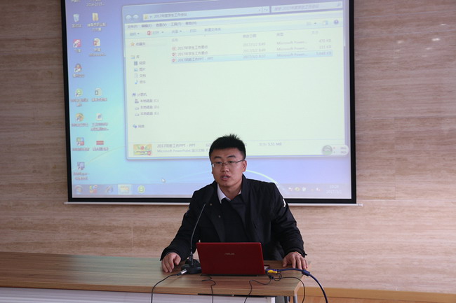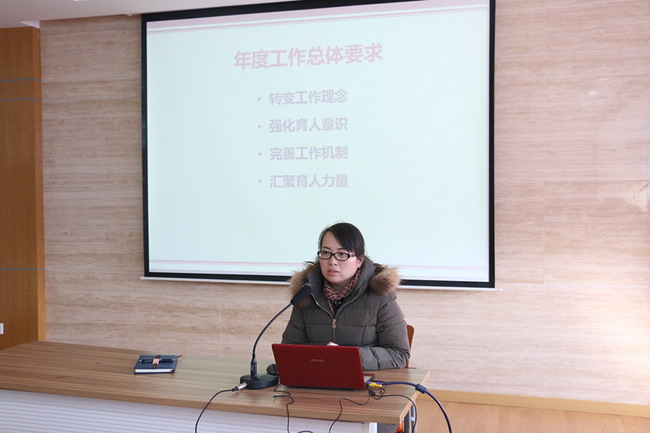 学工部部长邵菁指出2017年学生工作的总体要求是转变工作理念,强化育人意识,完善工作机制,汇聚育人力量。她从思想政治教育、辅导员队伍建设、资助工作、心理健康教育、园区育人、网络思政教育、增强档案意识、安全教育等八个方面全面部署了2017年学生工作,希望开创百花齐放、百家争鸣的育人新格局。团委副书记常浠婧从强化思想引领、着眼素质拓展、发挥服务功能、坚持强基固本等四个方面全面明确了学院团委2017年重点工作,表示将撸起袖子加油干,全面助推学院工作内涵式发展。