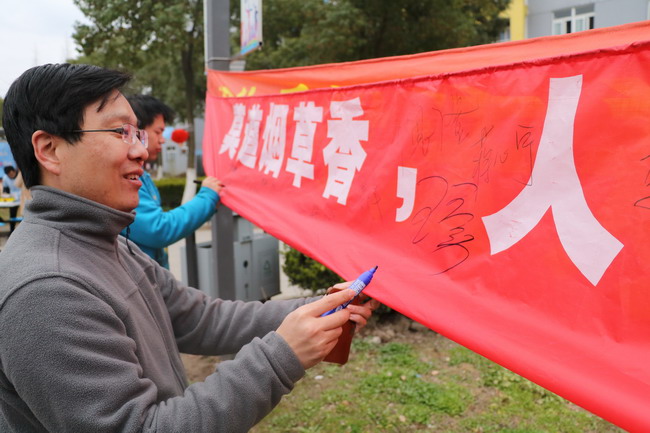 为响应《上海市公共场所控制吸烟条例》,2017年3月16日中午,我院经管系在学院生活园区食堂门口举行了以“莫到烟草香,人己皆可伤。愿君能自律,不负好时光。”为主题的雷锋月禁烟令宣传活动。 学院的教师、同学们都参与到了此次活动中,他们通过在禁烟活动横幅上签名以及在便利贴上留言的方式,来支持本次主题宣传活动,为禁烟令的宣传贡献自己的一份微薄之力。 /p>