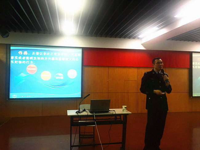 3月30日,学院博文讲坛2017年第一堂讲座于I401开讲。本期讲座为安全防范知识专题,由上海市公安局奉贤分局法制办陈惠警官主讲。2015级、2016级各班班长及各院系学生秘书、全体辅导员参加讲座。