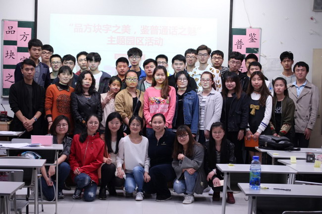 为了响应教育部及语委办的要求,大力推广普通话,唤起同学们对中国语言、文字的热爱,促进同学们规范使用语言、文字,营造和谐文明的校园文化氛围。 2017年4月27日,我院计算机应用系举办了以“品方块字之美,鉴普通话之魅”为主题的园区教育活动,活动邀请7号楼宿管陈老师、12号楼宿管周老师、计算机应用系辅导员胡婷、康鸿轩老师,以及园区自律委员会会长高正男同学担任嘉宾评委。王业平老师全程指导并组织活动开展。