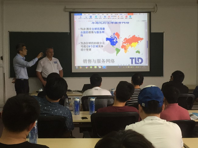 2017年5月中德工程学院按照人才培养方案正式启动针对2015级学生顶岗实习的企业宣讲会,23日组织“匠心”从业外资企业宣讲会。本次宣讲会由来自腾达航勤设备(上海)有限公司(简称:TLD Shanghai公司)亚太区的CEO——Thomas dorn先生、首席运营官于韬先生、人事经理赵红艳应邀出席,此外,中德工程学院2016届毕业的优秀同学吴辉也出席了宣讲会。