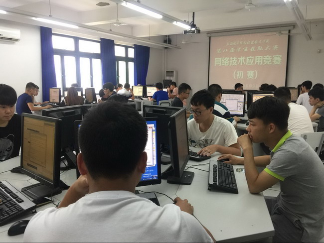 为激发广大学生对“网络技术应用”、“网站设计”等计算机操作的热情和兴趣,培养学生严谨的学习态度,提高学生计算机技能和创新能力,引导学生崇尚技能,“匠心”从业。我校通信与信息工程学院承办了第八届学生职业技能大赛“网络技术应用”、“网站设计”赛项比赛。6月8日,两个项目初赛在J楼拉开战幕。来自计算机网络技术专业、数字多媒体技术专业、计算机应用技术专业、软件技术专业等不同专业及上海电子工业学校的中专生等200余名学生参加了比赛。比赛当天,五个赛场同时开赛,赛场上参赛选手信心十足,认真、耐心地挑战每一项竞赛任务。通过技能竞赛,激发了同学们的学习热情,检验了学生们日常的学习和实训成果。
