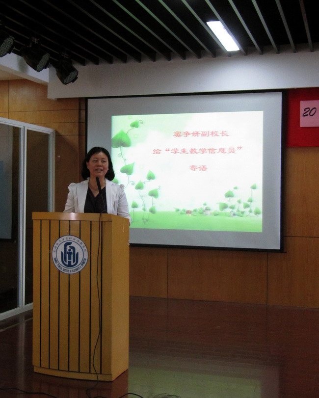 最后,窦争妍副校长给学生做寄语,希望信息员们继续发挥参与教学管理和自我管理的主体作用,增强责任意识,及时提供客观且有价值的信息,做好学校教学工作的好助手,为学校教育教学质量的提升贡献力量。(教务处) /p>