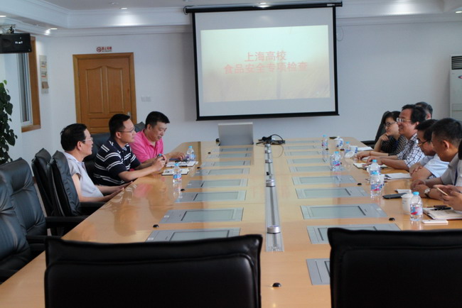 2017年6月20日下午,上海市教委委派的上海高校食品安全专项督查组一行六人,在组长沈建平的带领下来我校进行食品安全专项检查工作。我校张涛副校长、后勤保障处处长戎磊、副处长(挂职)程利康代表学校接待了督查组并向督查组具体汇报了我校在食品安全工作方面所进行的各项工作情况。督查组查阅了学校在食品安全方面所制订的各项规章制度、学校食品安全监督检查相关记录资料、学校食堂在主副食品采购、从业人员晨检、食品添加剂是否落实“五专”管理制度等方面的资料。然后督查组赴学校食堂和小卖部分别从学校食品安全责任制落实情况、食堂从业人员规范管理情况、食品规范管理情况、食堂科学管理和其他安全工作情况进行了现场查验。