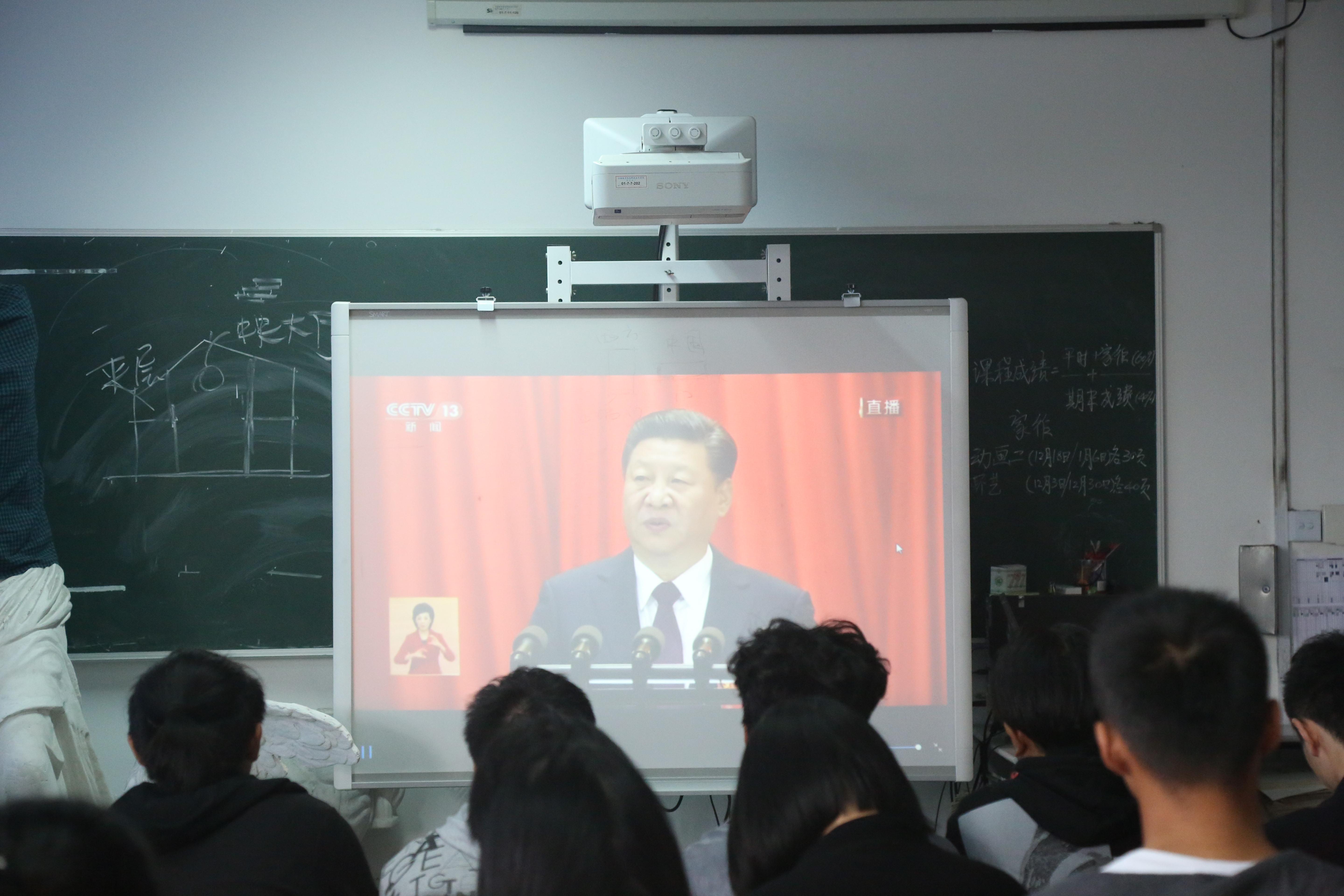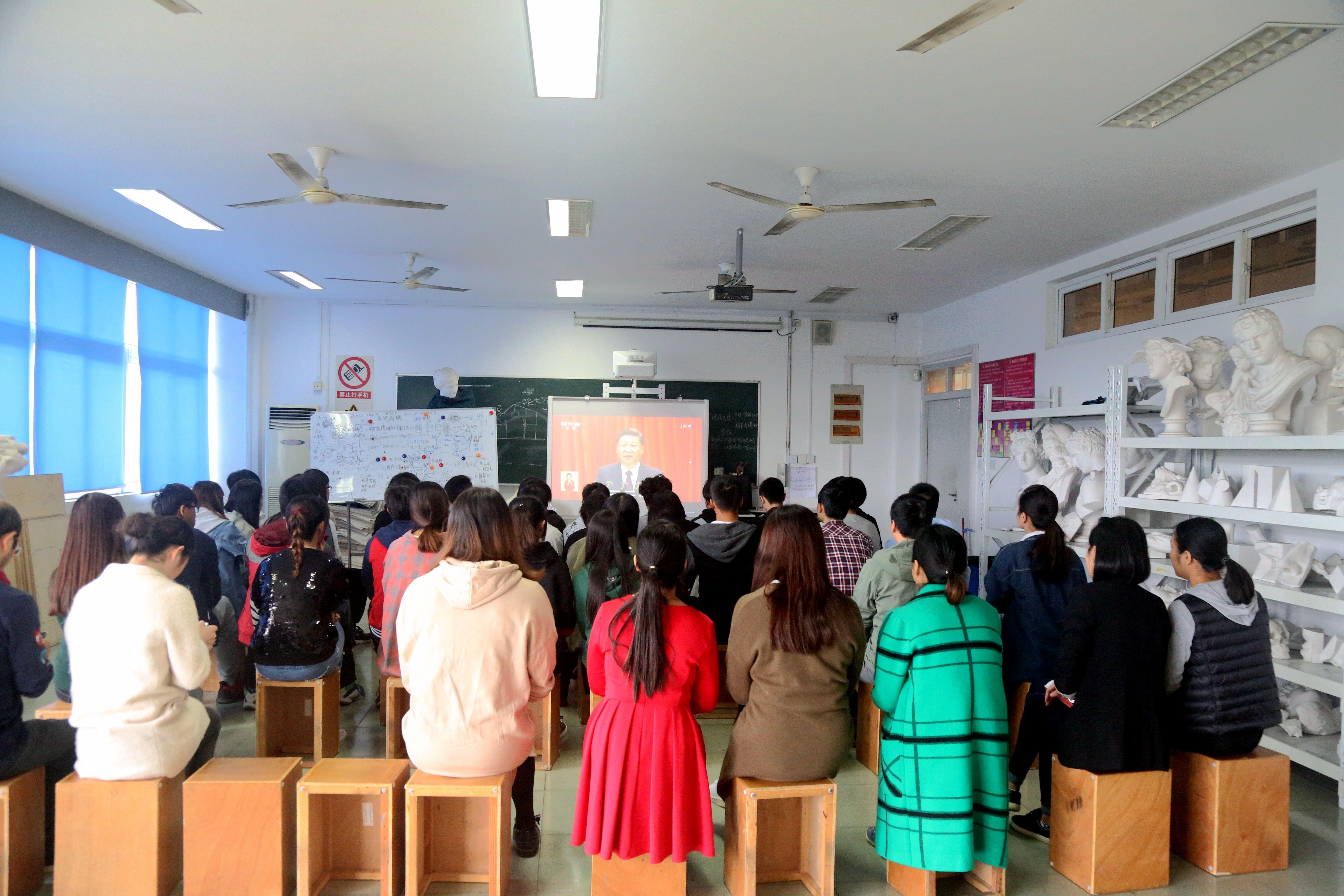 2017年10月18日上午9:00设计与艺术学院党总支组织师生代表在ZDE204观看中国共产党第十九次全国代表大会开幕会。党的十九大,是在全面建成小康社会决胜阶段、中国特色社会主义发展关键时期召开的一次十分重要的大会。会议上,习近平总书记肯定过去五年的工作和历史性变革,五年来的成就与美好是党中央坚强领导的结果,更是全党全国各族人民共同奋斗的结果,习近平总书记提出实现中华民族伟大复兴是新时代中国共产党的总任务,描绘社会主义现代化五位一体总布局,开拓新时代中国特色社会主义思想和基本方略,坚定决胜全面建设小康社会,开启全面建设社会主义现代化国家新征程。师生们认真学习会议精神,深刻领悟精神内涵。