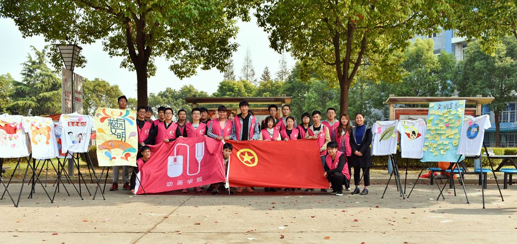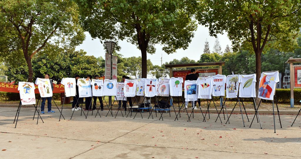 2017年11月8日上午10点至下午1点,设计与艺术学院团总支学生会在生活园区举行了文明校园彩绘T恤展览活动。活动以炫彩青春、文明先行、勤俭节约、尊老爱幼为宗旨,引领广大师生一起弘扬中华传统美德。