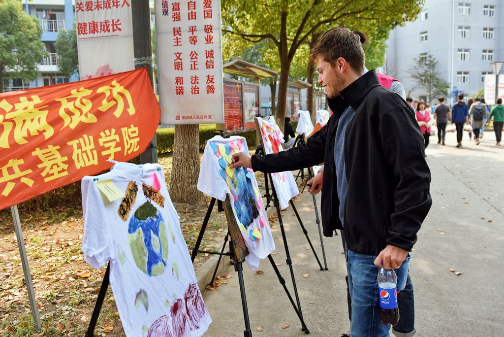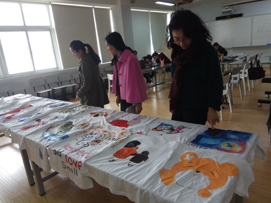 T恤展为校园生活增添了光彩,个性十足而又具有丰富内涵的T恤可以形成一道独特的风景线,“炫彩青春,文明先行”展现青春风采,倡导文明的思想道德,创建文明校园。展览展出了学生们通过奇思妙想、亲手制作的个性T恤,老师和学生纷纷被彩绘T恤吸引,为喜欢的作品投票,同时留下了自己的文明宣言,抒写文明心声,倡导文明校园,带动大家一起践行优秀传统美德。值得一提的是,外国学生也加入了投票的队伍里,他们感到很新奇,同时也称赞了同学们的艺术作品,促进了中外学生在艺术上的沟通和交流。本次彩绘T恤活动设有评比环节,以活动当天展览的投票结合专业老师点评方式得出。11月10日,由高晓昧、赵莹、王奕、李康康等老师组成的评审团,对T恤作品进行评比。通过两轮评比得出最终获奖名单。