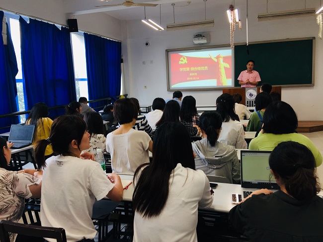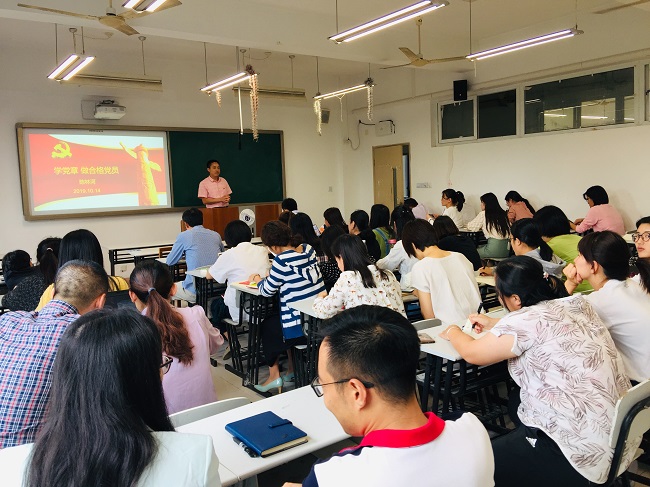 陈林河书记以“学党章,做合格党员”为主题,从党章的历次修改、十九大对党章的主要修改、学习党章与主题教育开展等内容,结合“不忘初心、牢记使命”主题教育中的个人学习体会,就工作中如何做一名合格党员进行了详尽阐述和深入交流。陈书记指出,党章是党的总章程,是全党必须共同遵守的根本行为规范。组织上入党一生一次,思想上入党一生一世。每一位党员自宣誓入党之日起,就要对照入党誓词严格规范自己的一言一行。做合格党员,需持之以恒学习党章,不断深化认识,把不断学习党章作为党员自身的毕生功课。新时代呼唤广大党员新担当、新作为,希望全体党员对党章自觉进行深入系统地学习,进一步理解党章的内容,增强为师生服务的意识,充分发挥党员先锋模范作用,积极主动承担工作,切实把工作任务抓好落实,为推动学院建设发展做出新的更大贡献。