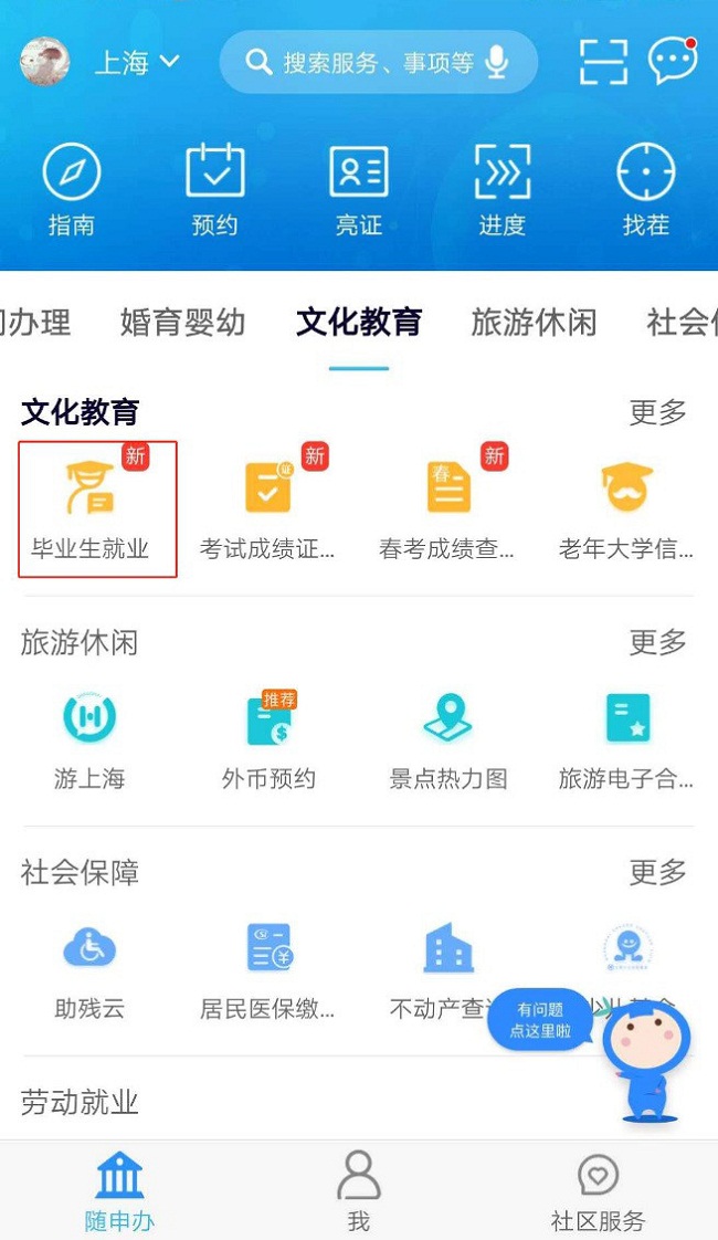 大学毕业生们注意啦! “一网通办”PC端入口/span>/p> ①登录“一网通办”总门户,地址:http://zwdt.sh.gov.cn/,点击“毕业生就业”/span>/p> ②进入“毕业生就业服务”专栏,选择角色。/span>/p> ③毕业生进入系统后,可进行投递简历、远程面试、网上签约等业务。/span> /p> ④用人单位进入系统后,可进行信息登记、发布岗位、筛选简历、面试通知、网上签约等业务。/span>/span> /p> “随申办”APP入口/span>/span>/span>/p> ①点击“随申办”APP“毕业生就业”。/span>/span>/span> /span>/p> ②毕业生进入系统后,可进行投递简历、远程面试、网上签约等业务。/span>/span>/span>/span> /span>/span>/p> ③或者在搜索框中输入“毕业生”,选择“毕业生就业”,进入专栏。/span>/span>/span>/span>/span>/p> /span>/span>/p> “随申办”支付宝入口/span>/span>/span>/span>/span>/p> ①进入支付宝 “随申办”。/span>/span>/span>/span>/span> /span>/span>/span>/p> ②从部门专区中,打开“上海市教育委员会”。/span>/span>/span>/span>/span>/span> /span>/span>/span>/span>/p> ③点击“毕业生就业”,进入系统。/span>/span>/span>/span>/span>/span>/span> /span>/span>/span>/span>/span>/p> ④毕业生进入系统后,可进行投递简历、远程面试、网上签约等业务。/span>/span>/span>/span>/span>/span>/span>/span>/p> /span>/span>/span>/span>/span>/span>/span>/p> ⑤或者在搜索框中输入“毕业生”,选择“毕业生就业”,进入专栏。/span> /span>/span>/span>/span>/span>/span>/p> /span>/span>/span>/span>/span>/span>/span>(信息来源:上海发布 供稿单位:校企合作处)/p>/div>/div>/div>