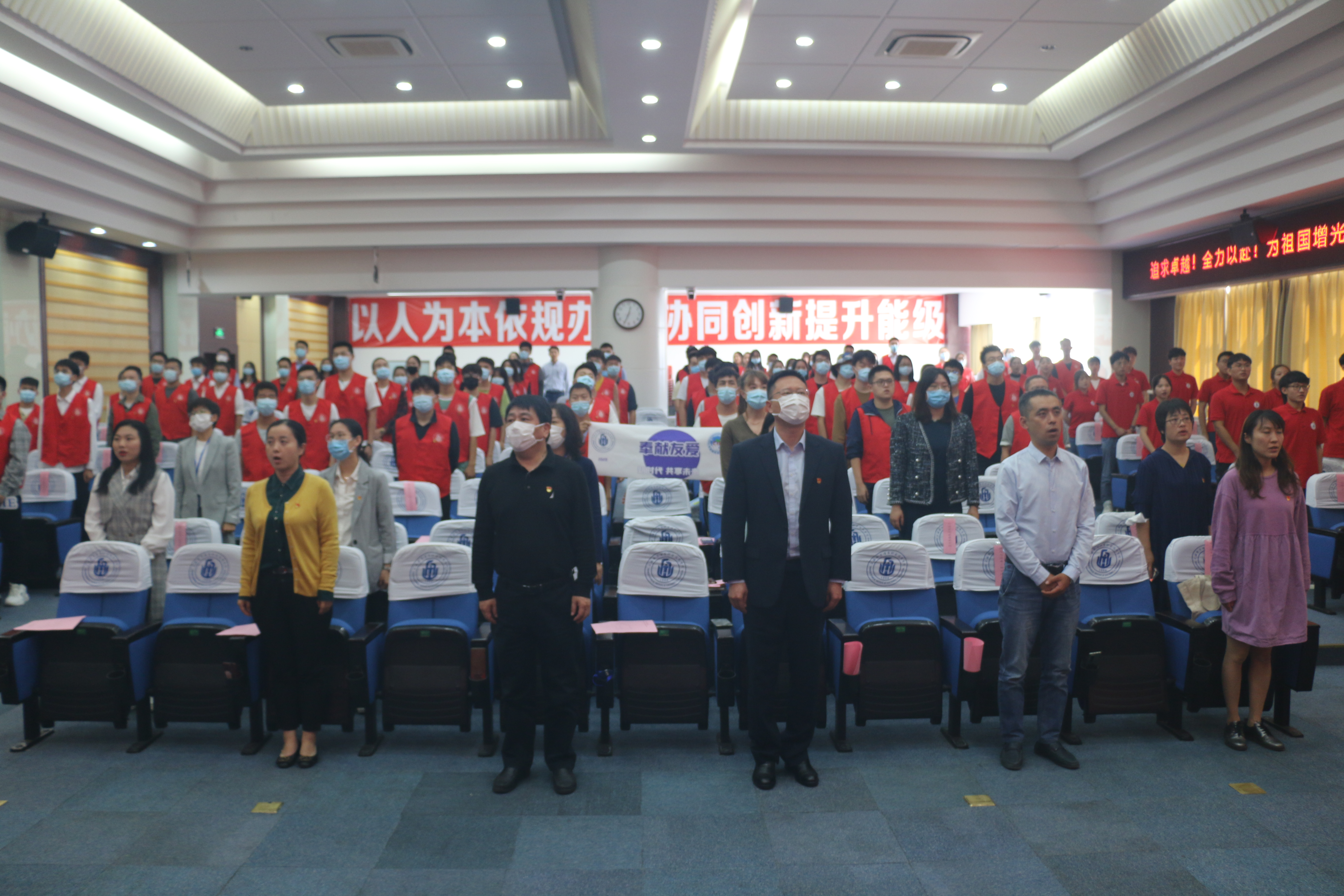 最后,大会在全体师生共唱团歌中结束。通过此次誓师大会,志愿者们更加坚定信心,纷纷表示必将以积极的状态、饱满的热情投入进博会志愿服务,践行“尚德修能 知行合一”的校训以及“自强不息 开拓创新”的学校精神,为祖国争光、为城市添彩。