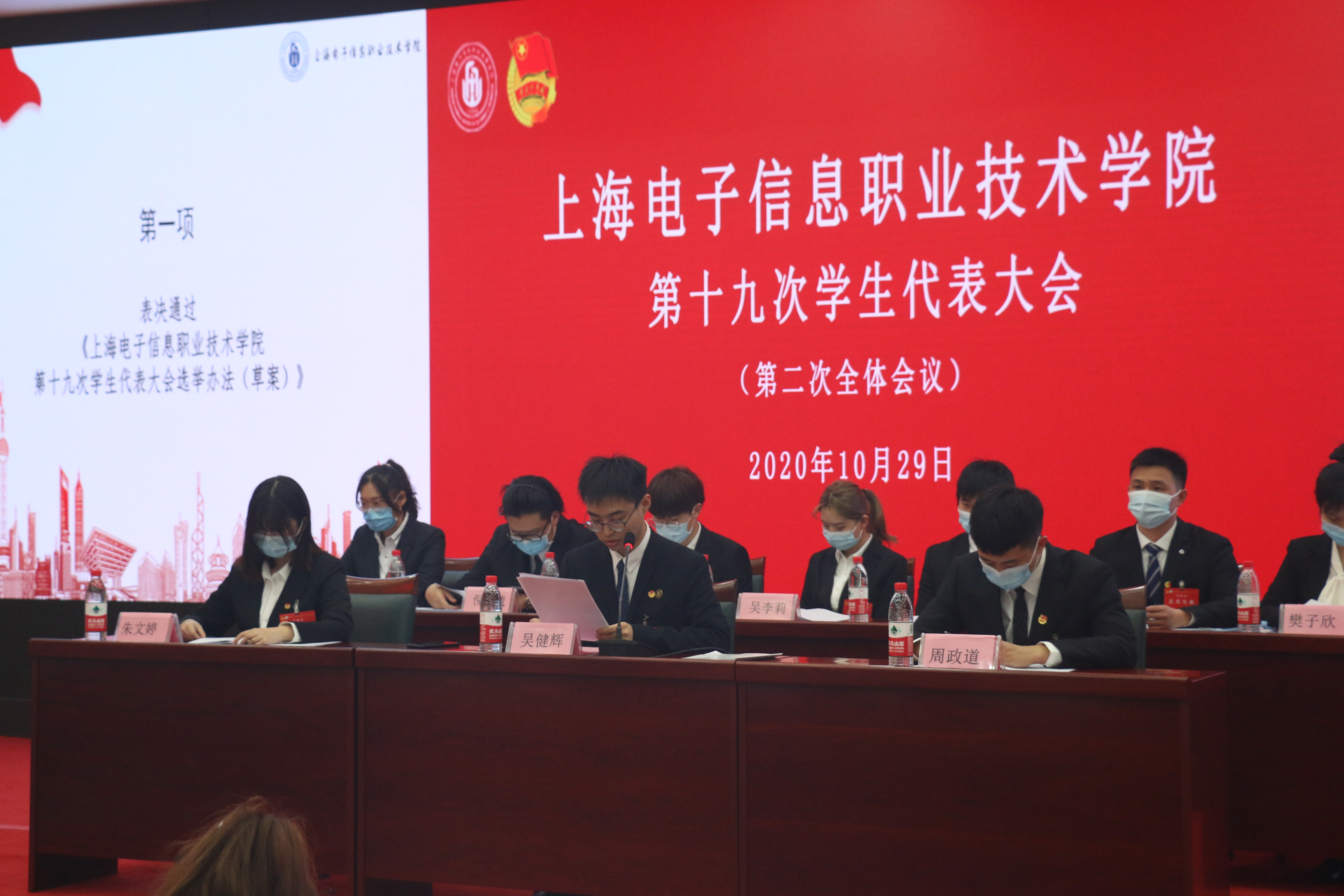 2020年10月29日,上海电子信息职业技术学院第十九次学生代表大会(以下简称“学代会”)在上海电子信息职业技术学院奉贤校区中德C楼108报告厅召开。