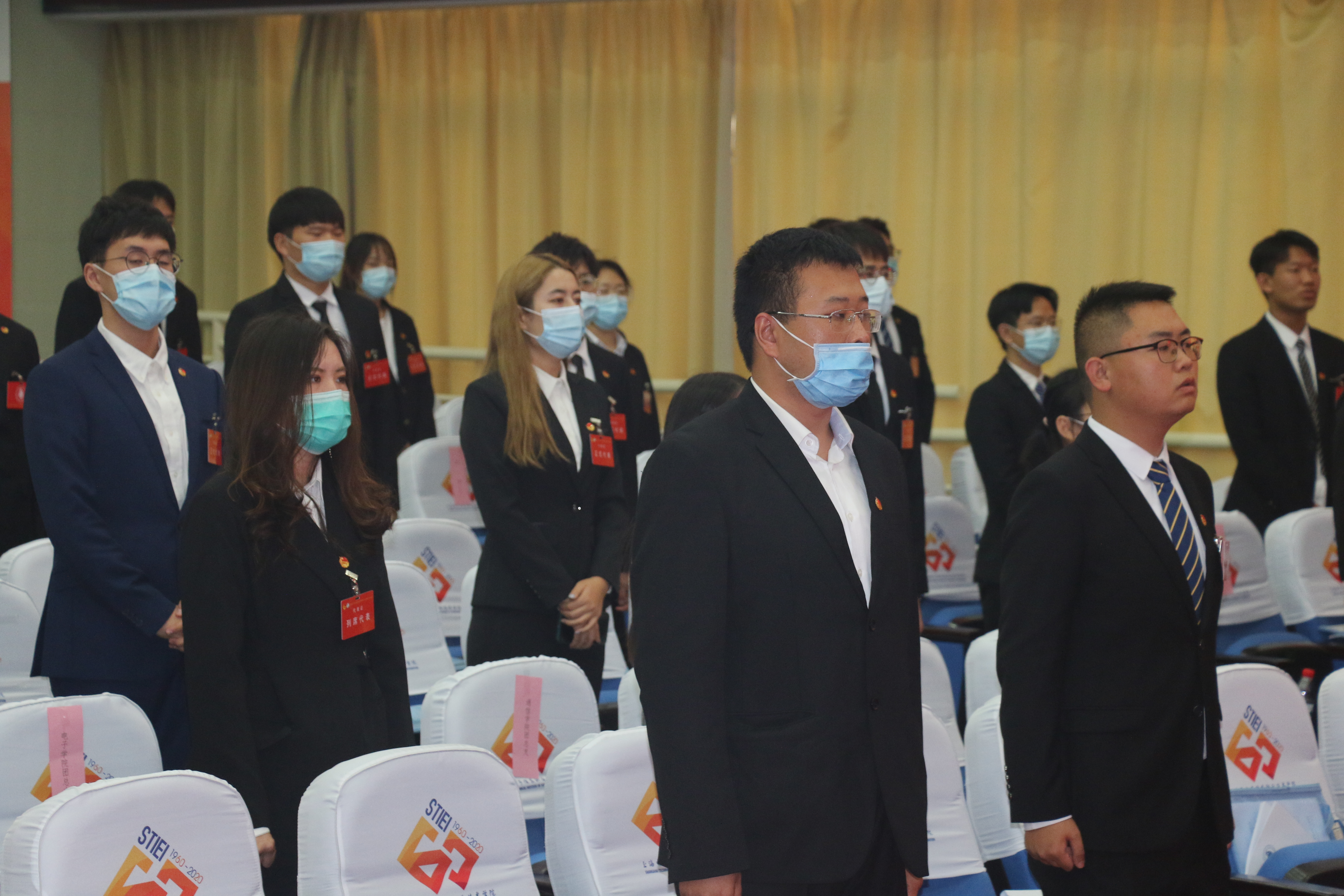 最后,全体与会代表起立奏唱《光荣啊,中国共青团》,上海电子信息职业技术学院第十九次学生代表大会顺利闭幕!