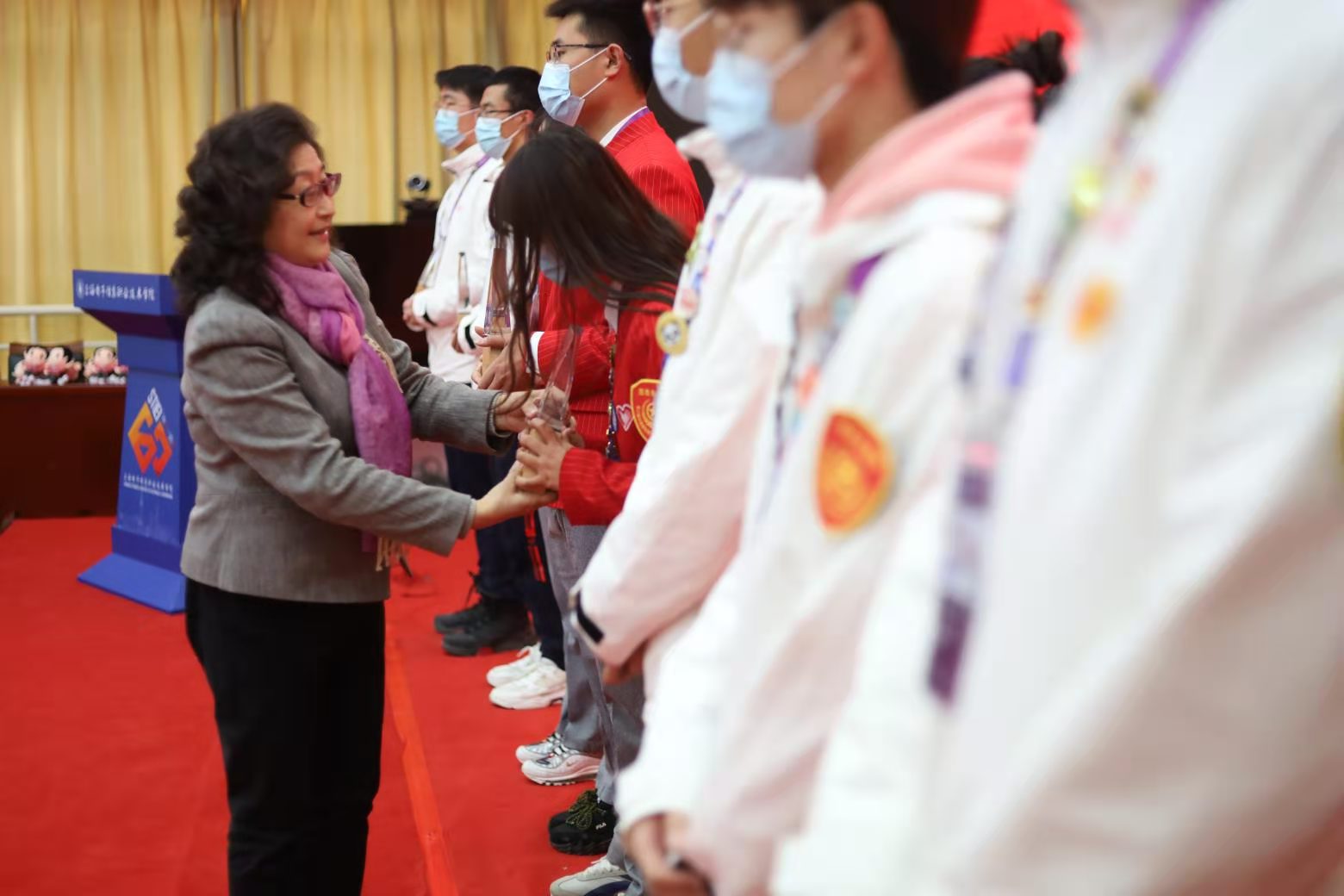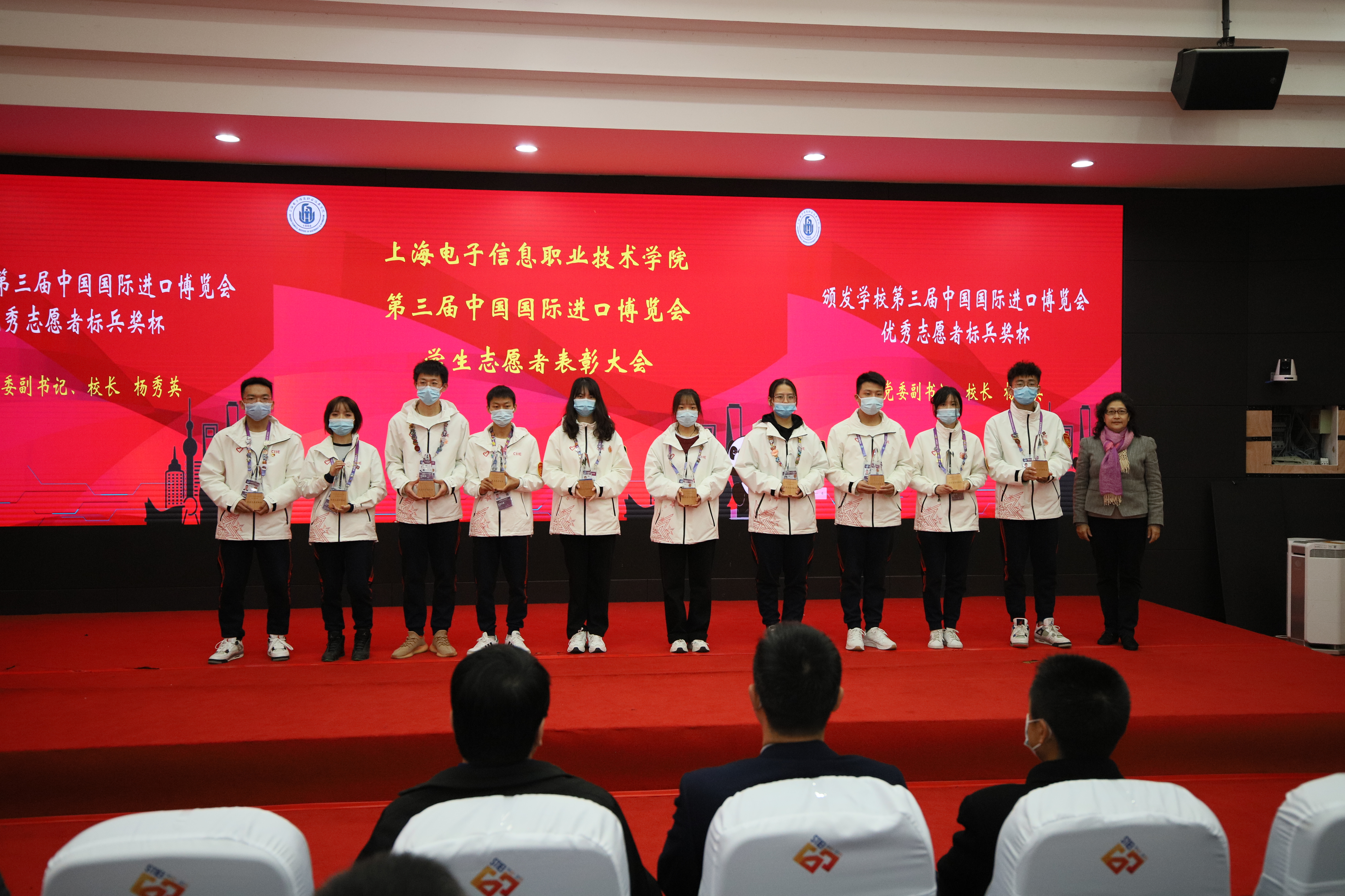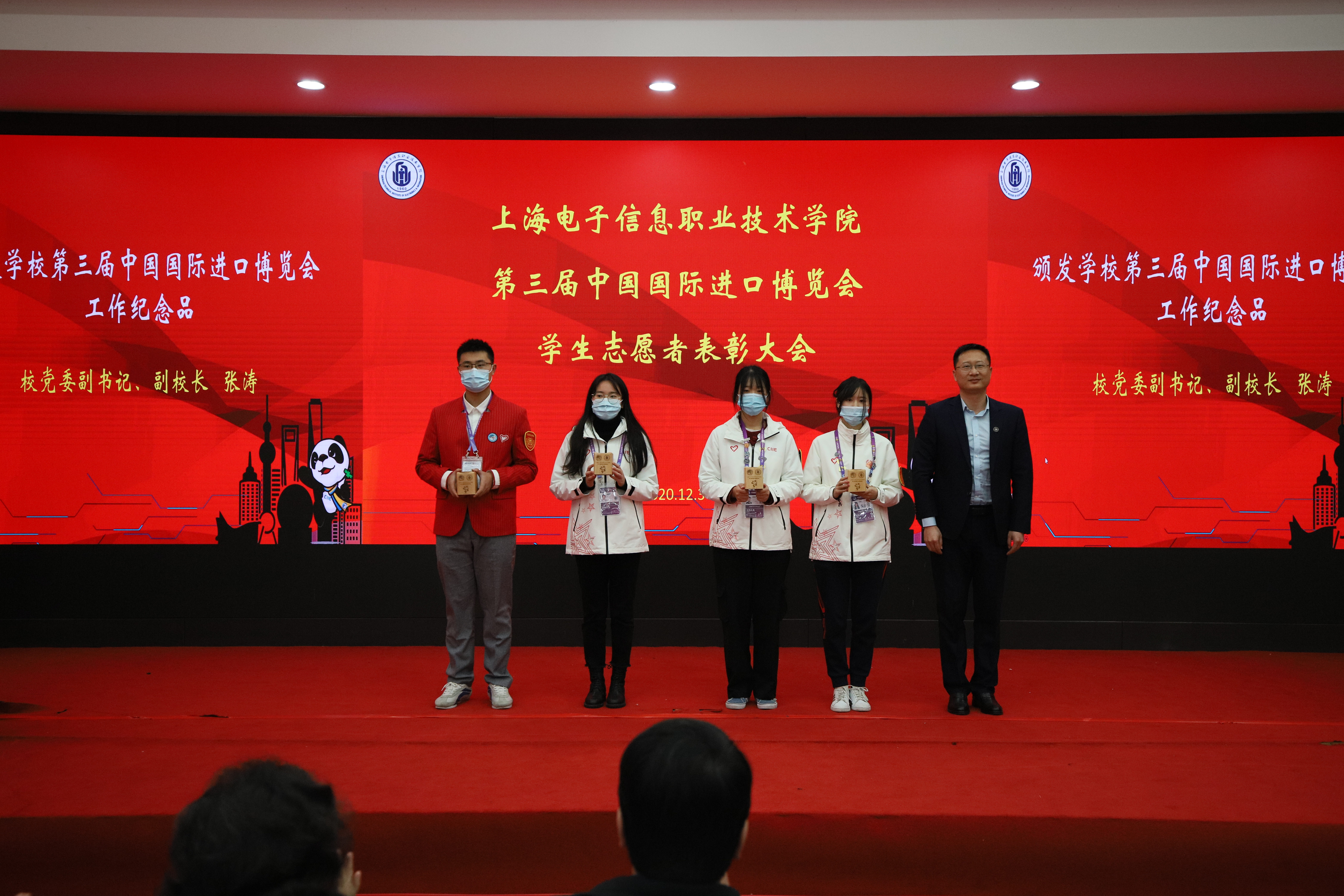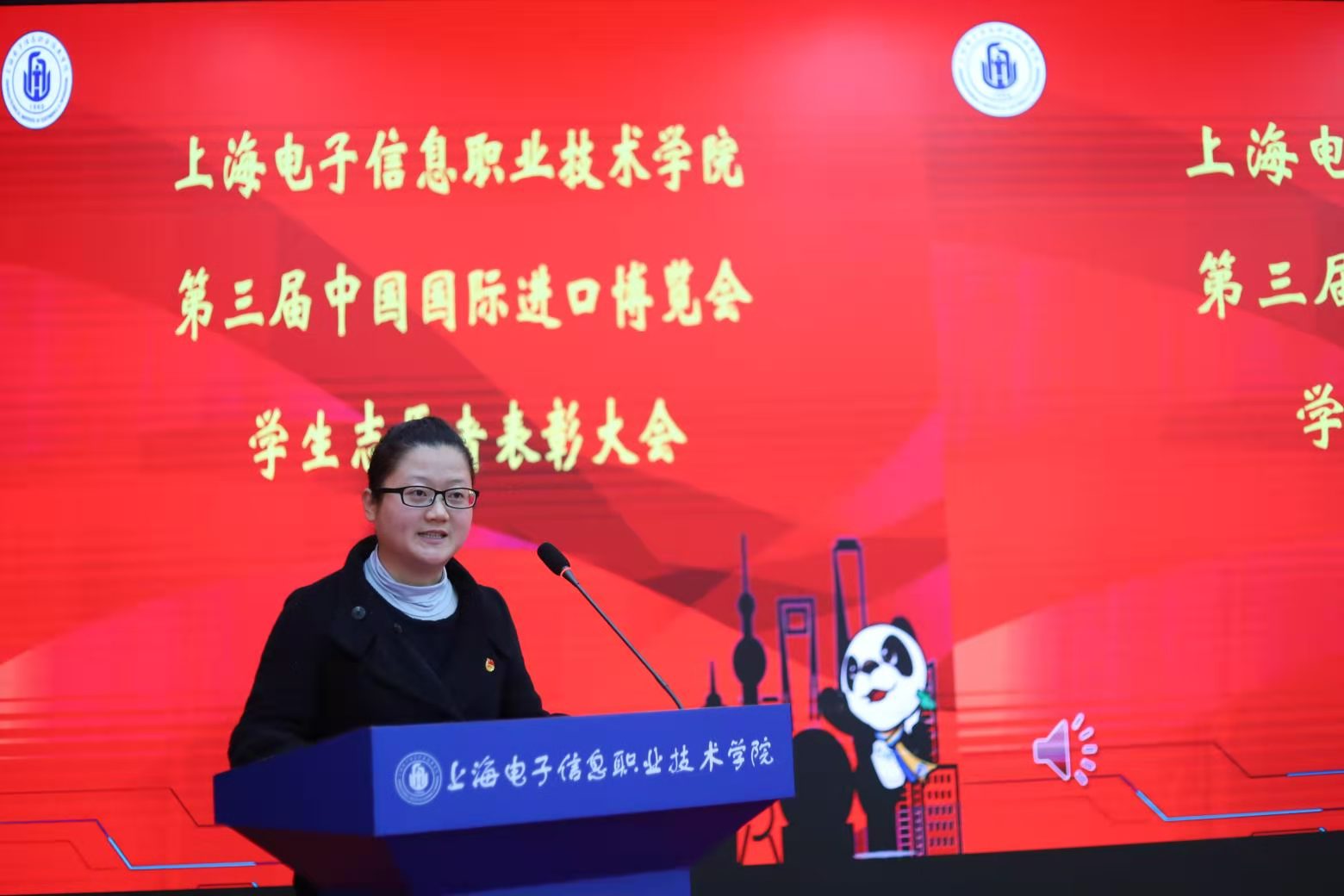 大会在庄严的国歌声中拉开序幕。在观看完进博会志愿者工作回顾视频后,首先由校团委副书记何川宣读《学校第三届进博会优秀志愿者标兵表彰的决定》。随后,校党委副书记、校长杨秀英为优秀志愿者标兵颁发奖杯,校党委副书记、副校长张涛为志愿者代表颁发学校第三届进博会文创品。