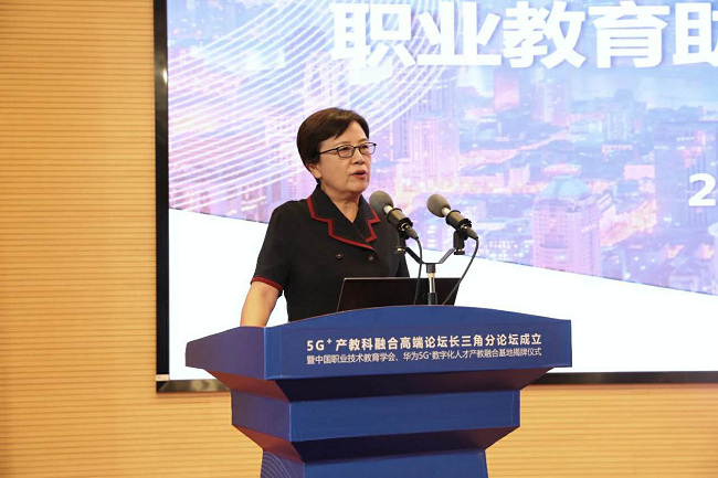 /span>/span> 成立仪式上,鲁昕作了《职教学会/span>+/span>华为:职业教育助力/span>5G/span>应用落地长三角》主旨发言,她从国家“十四五”新的发展阶段、新经济时代十大特征出发介绍了合作的时代背景,从合作内容、合作模式、合作路径、合作改革谈合作共育人才,为职业教育助力/span>5G/span>应用落地长三角指明了方向,提供了思路,表达了期望。