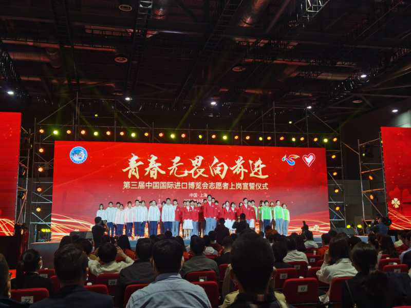 /span>/strong>“为祖国增光,为城市添彩!向前进,博青春!为进博,一起来!” 第三届中国国际进口博览会志愿者上岗宣誓仪式今天上午在国家会展中心(上海)虹馆举行。我校志愿者代表和现场近/span>500/span>名青年志愿者代表以及线上/span>4300/span>余名进博会志愿者共同庄严宣誓,他们将为今年的进博会“增光添彩”。/span>/span> /span>/p>