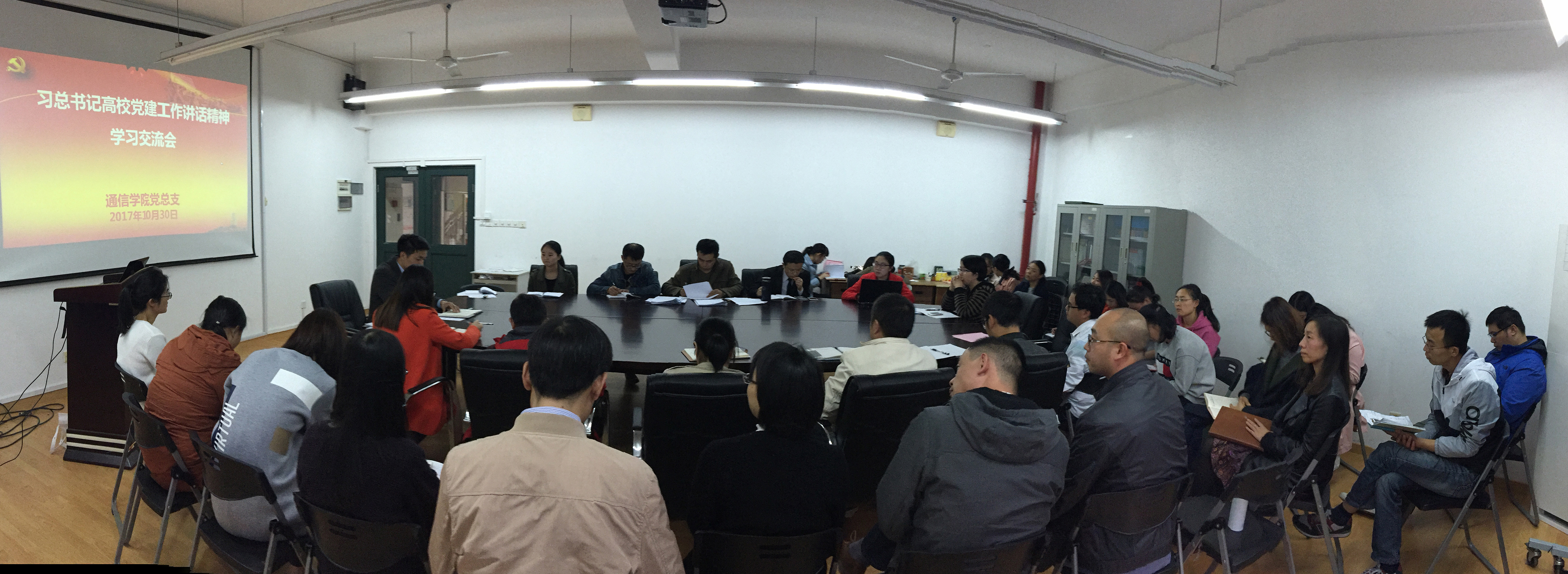 10月24日,党的十九大胜利闭幕。党的十九大报告用了大量篇幅,在多个部分高度强调了党的领导和党的建设。10月26日,学校党委下发了学习习近平总书记关于高校党建工作讲话的通知。为做好本次学习教育,10月27日通信学院党总支积极部署和指导各党支部开展学习,并于10月30日下午组织通信学院全体党员在J313召开专题生活会,交流学习体会与心得。