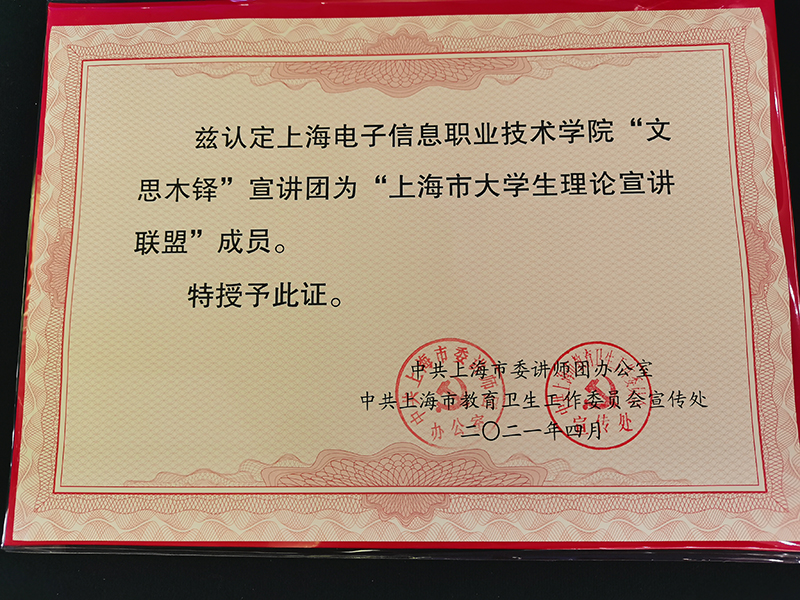 4/SPAN>/FONT>/SPAN>月/SPAN>23/SPAN>/FONT>/SPAN>日下午,上海市大学生理论宣讲联盟成立仪式在上海科技管理干部学院隆重举行。上海市委宣传部副部长徐炯、上海市教卫工作党委副书记、市教委副主任闵辉共同为联盟成立揭牌。来自全市/SPAN>47/SPAN>/FONT>/SPAN>所高校、/SPAN>65/SPAN>/FONT>/SPAN>支理论宣讲队伍的近/SPAN>150/SPAN>/FONT>/SPAN>名师生参加仪式。/SPAN>/P> /P> 仪式上,我校“文思木铎”宣讲团入选“上海市大学生理论宣讲联盟”,并代表上海高职高专院校,与复旦大学《共产党宣言》展示馆“星火”党员志愿服务队、上海交通大学“交医青年说”党史宣讲团一道作交流发言。/SPAN>宣讲团骨干成员杨慧静发言的题目是《学习宣传党史,绽放最美青春》。她主要从“我为什么要成为理论宣讲志愿者?”“我们是这样做的?”两个角度切入,基于我校在党史学习教育中的典型做法、“文思木铎”社在理论学习和宣讲活动中的特色,以及宣讲者在活动参与过程中的历练成长等三个方面展开。发言声情并茂,言之有物,得到了与会领导和同道的高度认可。/SPAN>/P> “文思木铎”宣讲团是学校在中国共产党建党/SPAN>100/SPAN>/FONT>/SPAN>周年之际,结合党史学习教育的相关要求,在原有大学生“文思木铎”社团的基础上建立起来的。宣讲团聘请优秀思政课教师、宣传部、马克思主义学院负责人组成专业指导团队,同时选拔入党积极分子、优秀学生担任宣讲团成员,进行常态化理论学习培训。鼓励学生将个人奋斗融入国家发展的历史进程当中,讲好中国故事、传递中国声音。以入选“上海市大学生理论宣讲联盟”为契机,宣讲团将于/SPAN>4/SPAN>/FONT>/SPAN>月/SPAN>26/SPAN>/FONT>/SPAN>日,赴上海城建职业学院开展首场大学生党史校际宣讲活动。/SPAN>5/SPAN>/FONT>/SPAN>月/SPAN>8/SPAN>/FONT>/SPAN>日,将赴杨浦滨江,现场为我校来自全国各地的学生代表进行党史宣讲,让同学们通过鲜活的案例感受社会主义建设的伟大成就,感受“人民城市”理论的魅力。“入盟/FONT>”入盟喜讯传来,宣讲团成员个个精神振奋,纷纷表示将做好“习近平新时代中国特色社会主义思想”的木铎子,把红色基因,红色精神代代相传,把新思想,新理念播撒开来,将青春之花绽放在中华民族复兴的伟大征程中。 /P> 据了解,“文思木铎”社成立于/SPAN>2018/SPAN>/FONT>/SPAN>年/SPAN>3/SPAN>/FONT>/SPAN>月。文是指中华优秀传统文化,思是指马克思主义,木铎则比喻宣传教化的人。该学生理论社团以学习宣传习近平新时代中国特色社会主义思想为己任。三年来,共开展校内外活动/SPAN>62/SPAN>/FONT>/SPAN>场,受众学生/SPAN>2000/SPAN>/FONT>/SPAN>余人。/SPAN>2019/SPAN>/FONT>/SPAN>年/SPAN>9/SPAN>/FONT>/SPAN>月,马畅、王潇两支学生团队在“上海高校学生讲思政课公开课展示”活动中双双获奖。社团还先后组织学生参观中共一大会址、举办“四史”知识竞赛、组织骨干成员开展“四史”宣讲、举办“学习强国”挑战赛、组织“诵诗词,知党史”大赛等主题活动,师生同思同频、同向同行、同台讲思政,很多之前不大关注时政的同学,逐渐转变成主动了解国内外时政的热血青年。(图:谢国日、杨慧静 /SPAN>/FONT>/SPAN>/SPAN>文:谢国日、陈卫炉 /SPAN>/FONT>/SPAN>/SPAN>供稿:宣传部、马克思主义学院)/SPAN>/SPAN>/P> /P>