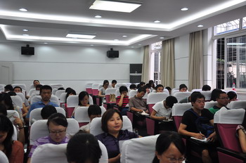 9月5日 ,2012年辅导员暑期培训于徐汇校区报告厅拉开帷幕,各系、二级学院党支部书记、辅导员、学生秘书以及学工部60余人参加培训。