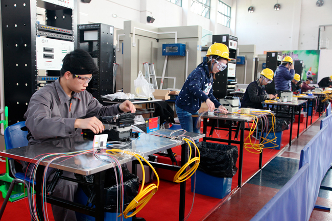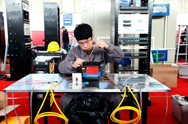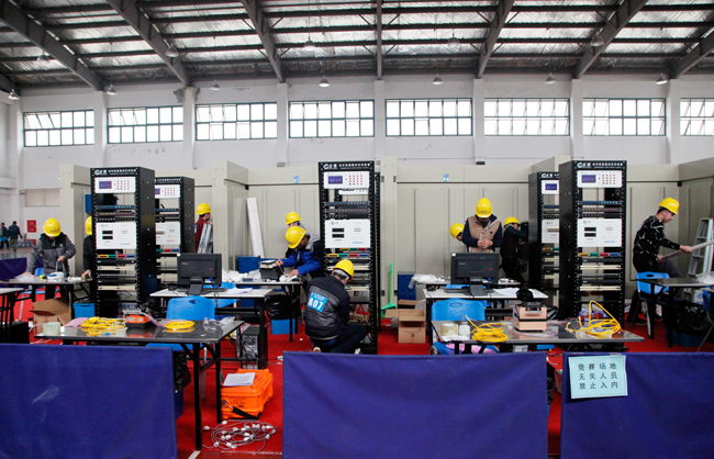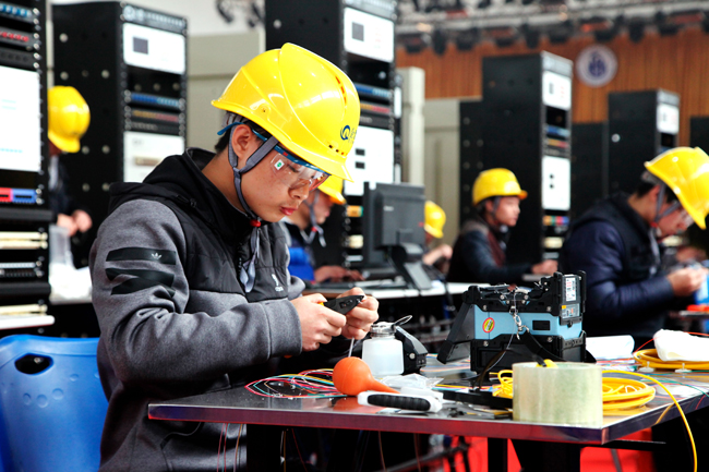 “信息网络布线”项目,共有来自全市8所高职院校的40名选手参加。项目参照世界技能大赛标准,包括光纤熔接速度赛、建筑物布线系统、办公室及家庭网络布线、项目个人风貌与操作等4个模块,比赛时间180分钟。比赛角逐十分激烈,选手们心无旁骛,争分夺秒。比赛评分标准科学、严谨、细致,如未使用护目镜、未安全开剥光缆护套、擦拭光纤的无纺布未丢入垃圾箱、产生安全事故等均计入扣分项。项目裁判长徐珺表示,该赛项自开设以来,今年规模最大,比赛与世界技能大赛标准相接轨,接近实战,与学生未来从事的职业、岗位实际要求结合更加紧密,不仅比拼选手的操作技能、动手能力,还考察选手的职业规范、操作习惯、安全意识,只有经过日常的反复锤炼,才能达到规范、速度、质量的卓越,这也是培养、提高高素质技术技能型人才水平的必然要求。