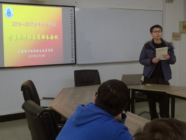 2017年3月15日,学院本学期第一次学生教学信息员组长会议在奉贤校区召开。会议由督导室主任戴玉珍老师主持,院学生会学习部部长与各系(二级学院)学习部部长(兼学生教学信息组组长)出席了会议。