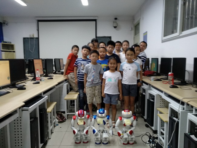 在三天的体验活动中,尽管气温超过了40C,但是仍然挡不住大家的学习热情。每天上午9点到下午4点的学习中,各位小朋友认真听讲,积极动手实践,通过编程让机器人NAO完成了一个又一个具有挑战性的任务。活动中,课堂气氛轻松活泼,小朋友们笑声不断,在欢声笑语中体验了未来人工智能与计算机编程的职业特点。