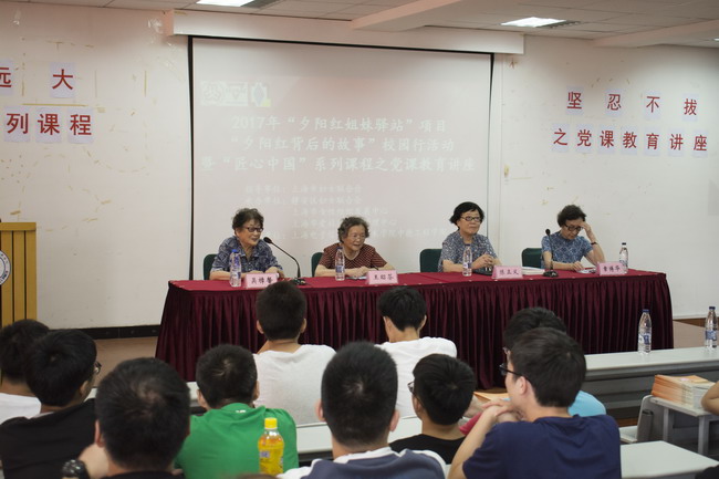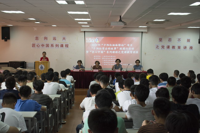 2017年9月19日下午,我校中德工程学院组织了“志向远大,坚忍不拔”为主题的“匠心中国”系列课程之党课教育讲座。中德工程学院邀请了四位“夕阳红姐妹驿站”的老三八红旗手吴樟馨、章博华、王昭芬、陈正义,为2017级全体中德工程学院新生带来党课教育讲座。本次讲座由中德工程学院张晶老师主持。