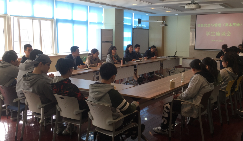 座谈会上,信息安全与管理专业高本贯通班班长汇报了班级同学在校学习和生活情况,分享了自己的学习经验。他说:班级同学学业情况总体良好,全班40名同学,已有23名同学通过了大学英语四级考试,其中吴同学以前主要学习日语,英语水平较低,但通过一个学期的努力,也考过了大学英语四级。会上,与会的其他同学不仅汇报了自己的学习和生活情况,也提出了一些问题和困惑。与会领导在认真听取同学们的发言后,对同学们提出的问题一一作了解答,并引导同学们要养成良好习惯,不懂就问,增强自学能力;希望班级建立各门课程帮扶小组,在学习和生活中形成互帮互助、共同进步的良好氛围,也希望同学们在学习和生活中能有更多的自信和尝试,多参加各类文体和实践活动,丰富课余生活,努力提高综合素质能力。